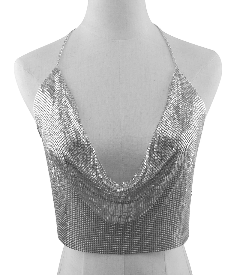 Женское бикини с цепочкой на грудь и алюминиевыми блестками
