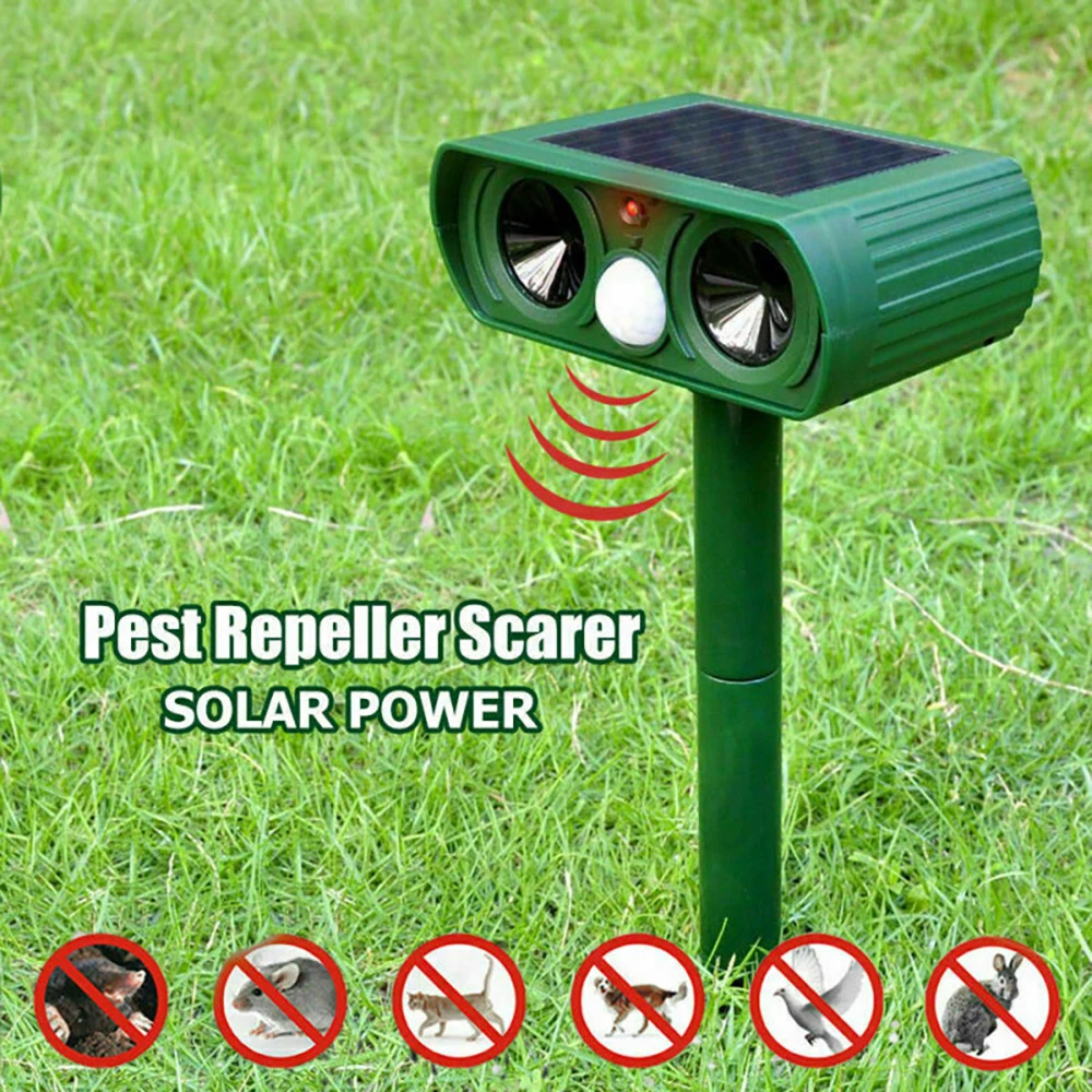 Ультразвуковой отпугиватель животных на солнечных батареях, садовый...