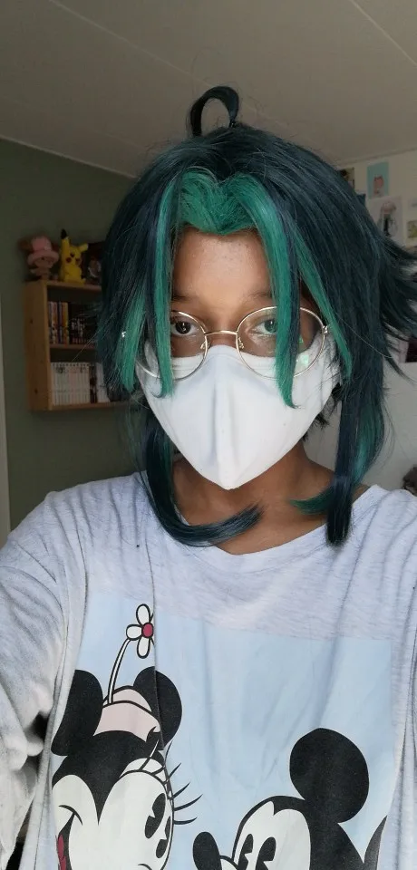 Парик будет нужен для стильного образа, когда вы получите его, но это хорошее качество и очень удобно носить! У меня большая голова, и она подходит, не вызывая головной боли (с возможностью сделать ее меньше для маленьких головок). Цвет точно соответствует персонажу! Фото без каких-либо стильных деталей, прямо из упаковки! Я рекомендую его, если вы хотите легкий парик Для Сяо, я бы, вероятно, перейдите на кружевную версию, которую они продают, если вы хотите что-то более тонкое в разделе волос. Но для капризов и чернил этот парик является идеальным!