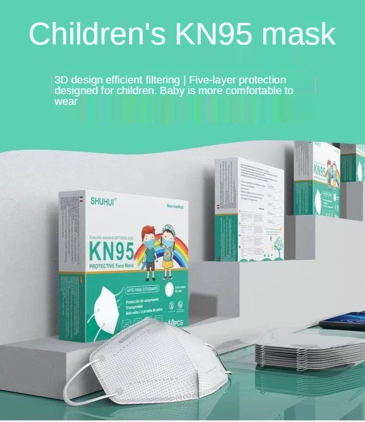 FFP2kn95 детская маска пятислойная Встроенная 3D стерео Студенческая двойная детская маска из мелтблауна Сертификация CE