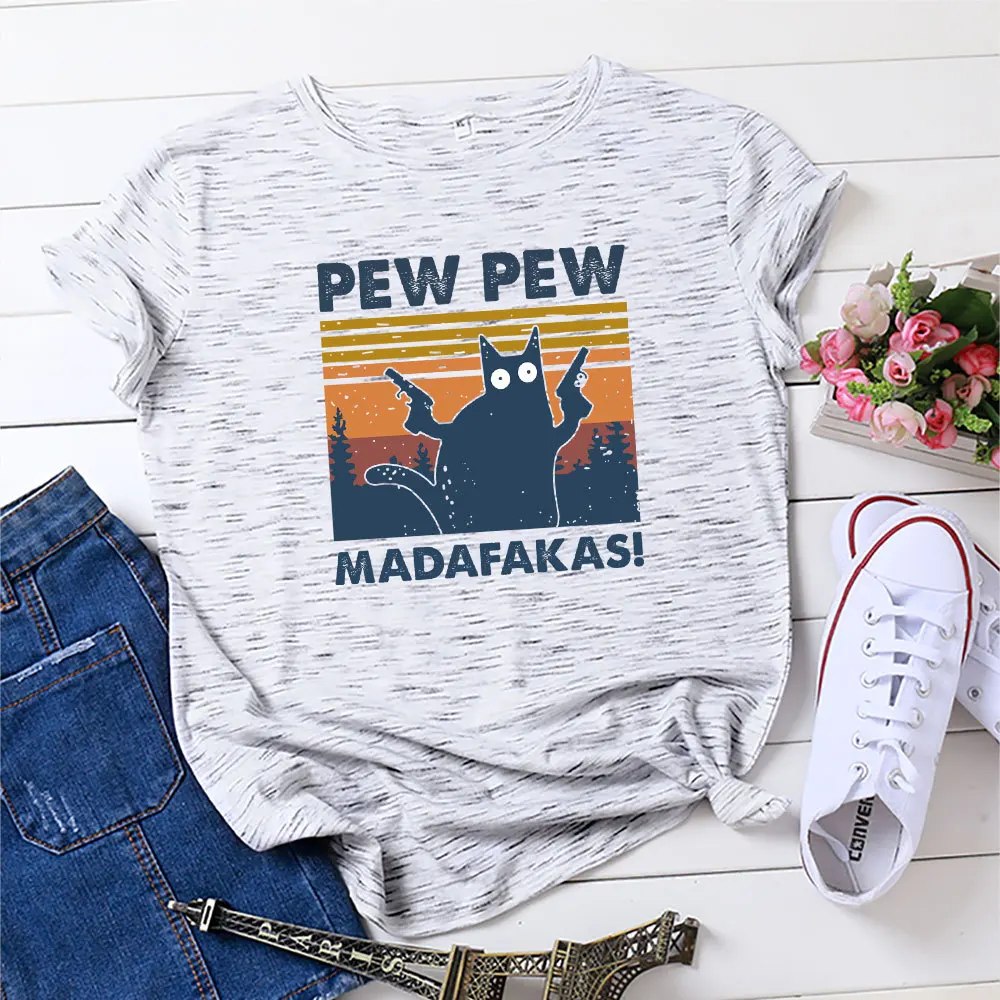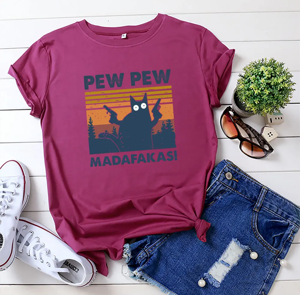 Женские топы розового цвета, хлопковая футболка, летняя футболка с коротким рукавом, Pew Madafakas, повседневные свободные женские футболки с принтом