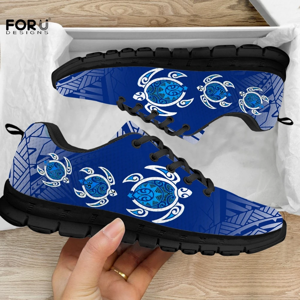 FORUDESIGNS полинезийские племенные синие женские сетчатые спортивные туфли с рисунком черепахи, белые кроссовки, Повседневная Уличная обувь на плоской подошве