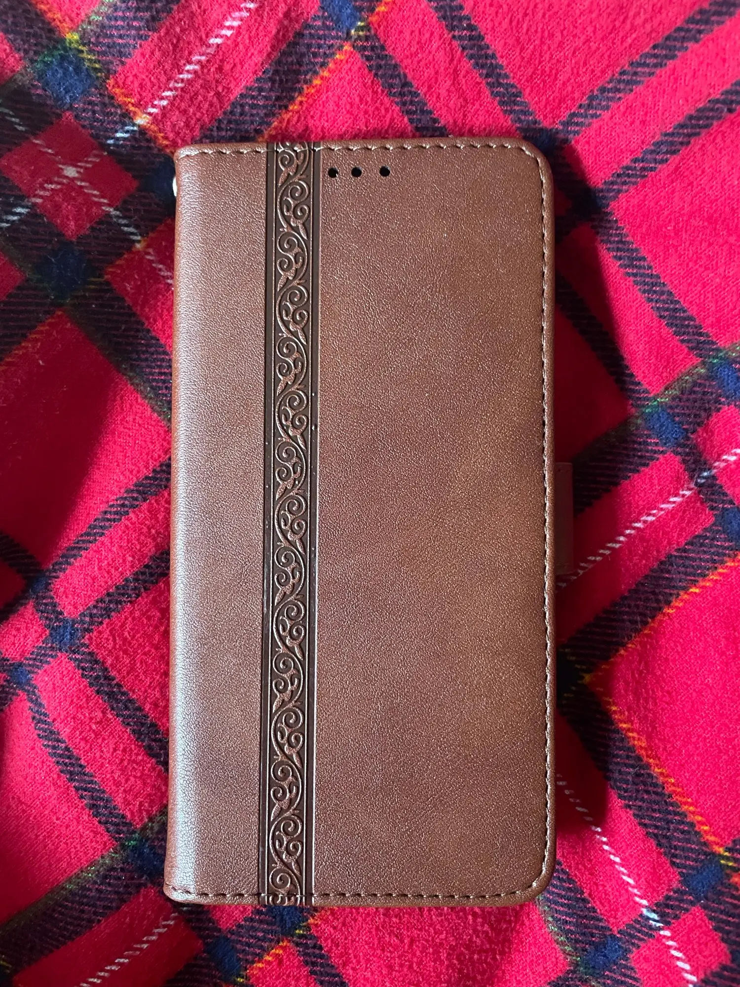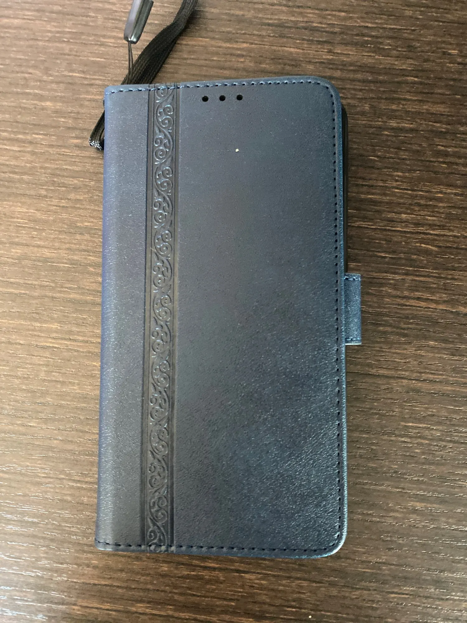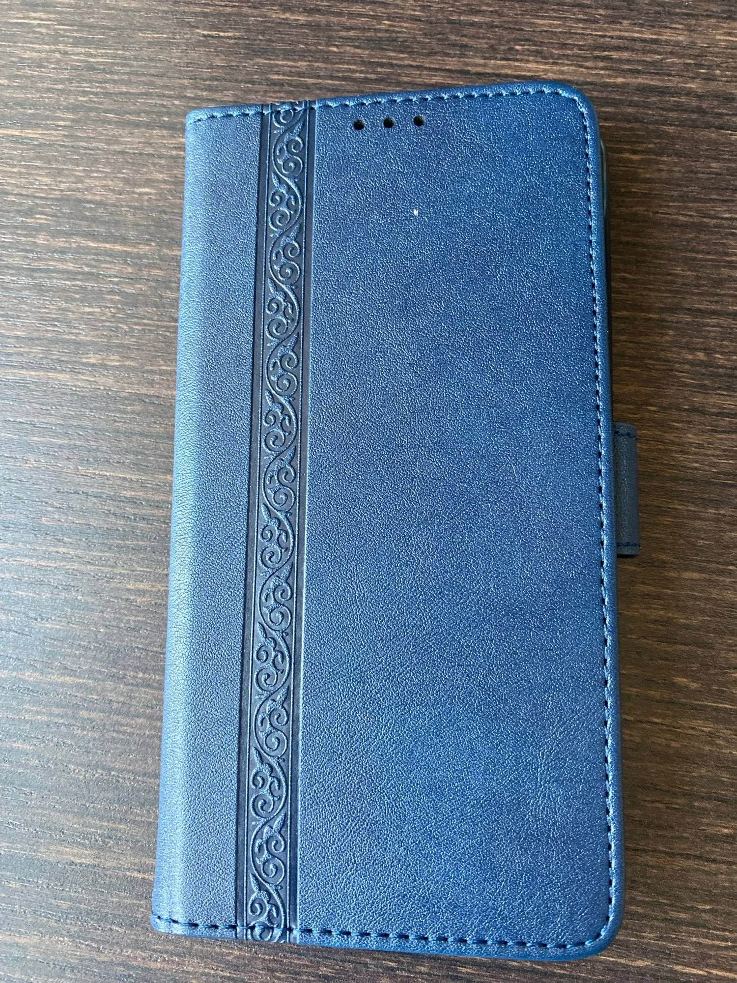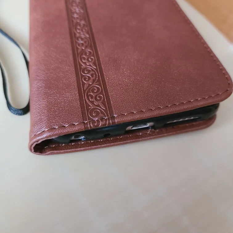 Доставка примерно месяц, чехол пришел без повреждений, упакован в плотный конверт с пупыркой. Главным критерием выбора этого чехла были кармашки под карты. Цвет соответствует картинке, в комплекте вложен ремешок. Застёжка магнитная хорошо работает. Прошит аккуратно, красивое тиснение на лицевой стороне. Покупкой довольна, рекомендую
