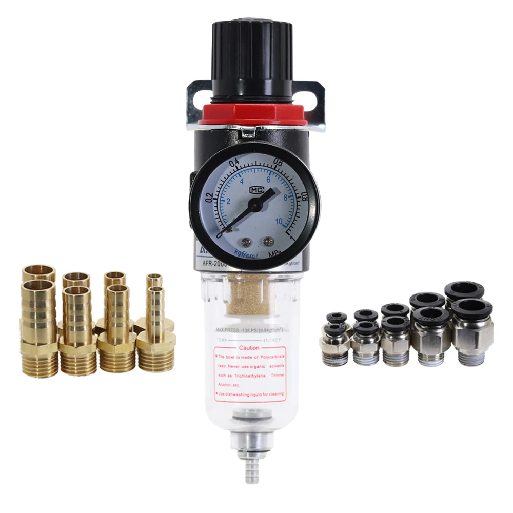 Регулятор давления воздуха AFR2000, сепаратор воды, фильтр-ловушка, Аэрограф, компрессор с фитингами, комбинация без соединения