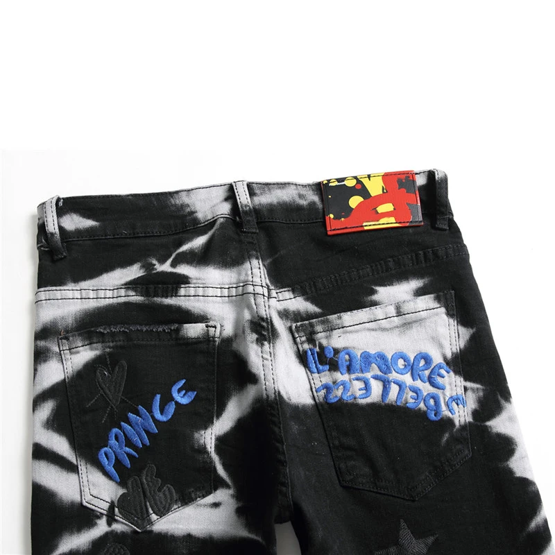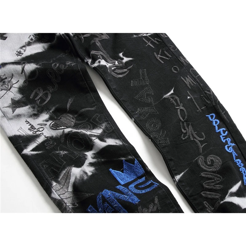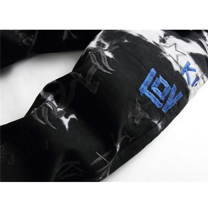 Джинсы мужские с принтом и вышивкой, узкие брюки из денима, байкерские прямые брюки, повседневные дизайнерские удобные