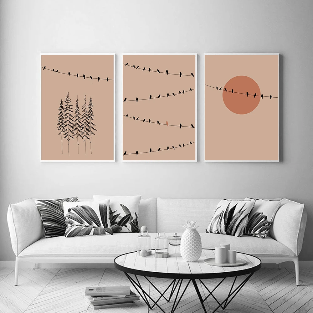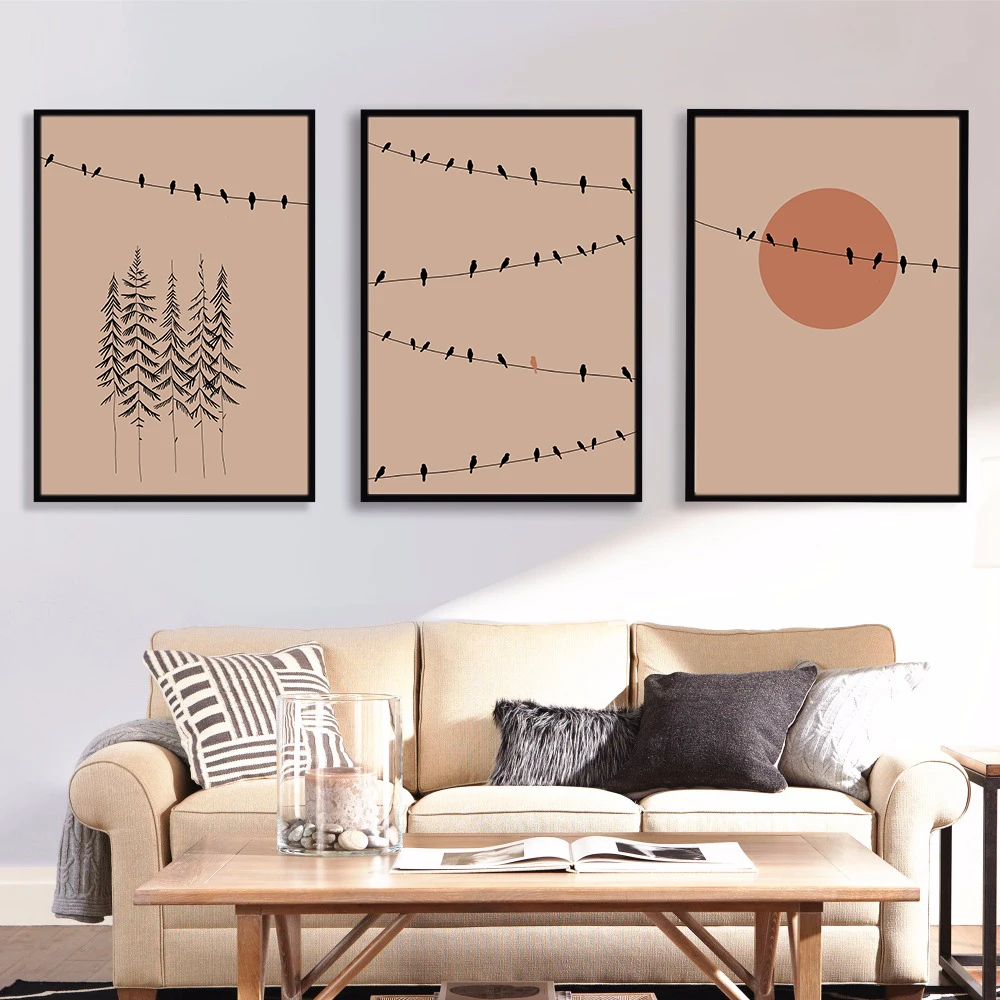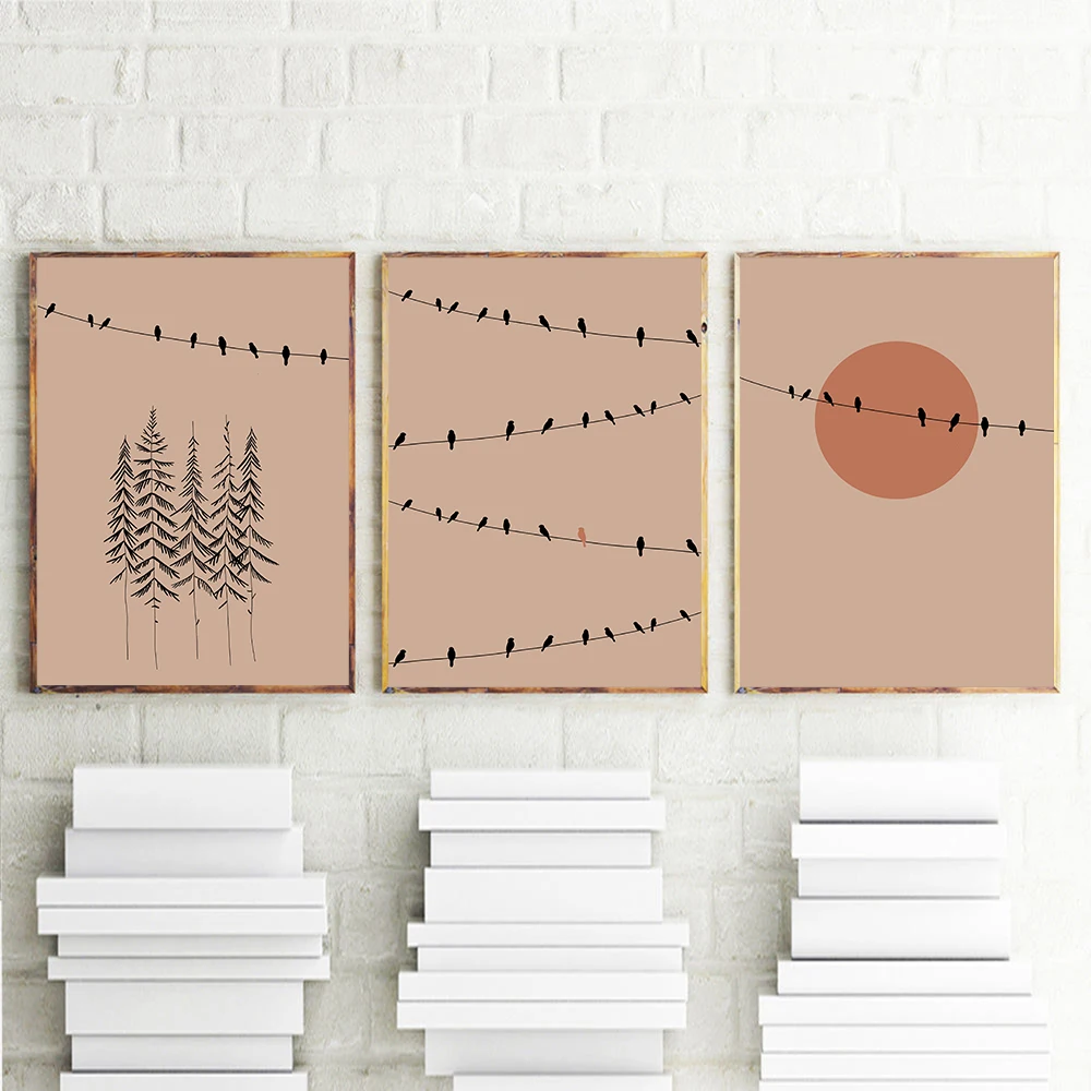 Boho тройной Sun Moon плакат минималистское полотно Nordic иллюстра...