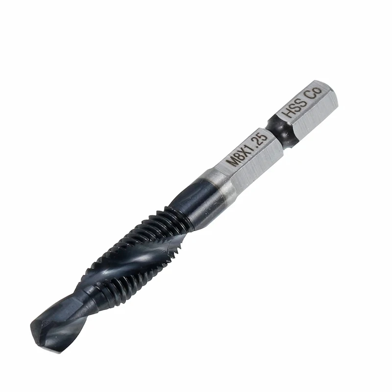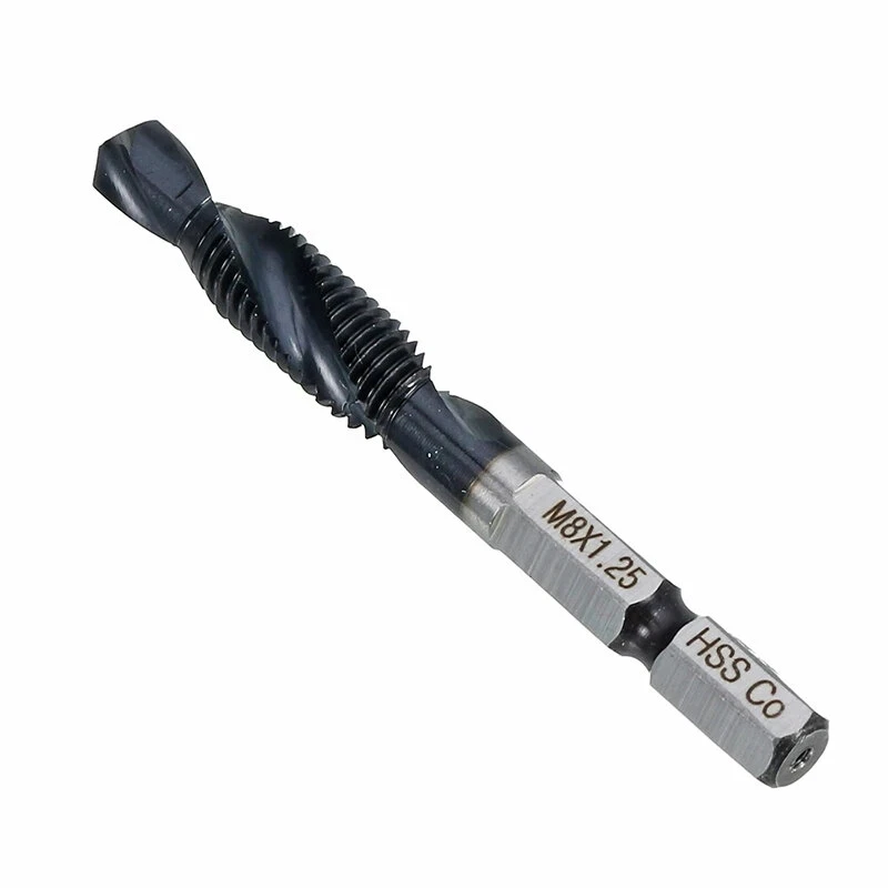 Размер Диаметр бит (мм) Диаметр хвостовика (мм) Длина хвостовика (мм) Длина лезвия (мм) Общая длина (мм) M3x0.5 3,0 6,35 41 25 65 M4x0.7 4,1 6,35 36 31 66 M5x0.8 5,0 6,35 36 32 67 M6x1 6,0 6,35 34 34 68 M8x1.25 8,1 6,35 33 38 69 M10x1.5 10,0 6,35 32 40 70Количество: 6 шт. Особенности: 1. Использует HSS-Co материал, твердость до HRC89, более прочный, используется для сверления стальной пластины даже 2-4 мм 304 стальной пластины. 2. Покрытие TiALN промышленного класса, поверхность покрытия TiAlN образует Al2O3, который образует жесткий защитный слой при сверлении. (Идеально подходит для высокоскоростного бурения) 3. Срок службы в 5-10 раз дольше, чем у дрели общего крана. (Может сверлить без охлаждающей жидкости, с охлаждающей жидкостью, срок службы будет больше И производительность будет лучше.) 4. 118 ° X дизайн бит, вы можете сверлить под любым углом, без скольжения. Посылка включает в себя: 6 сверл для крана
