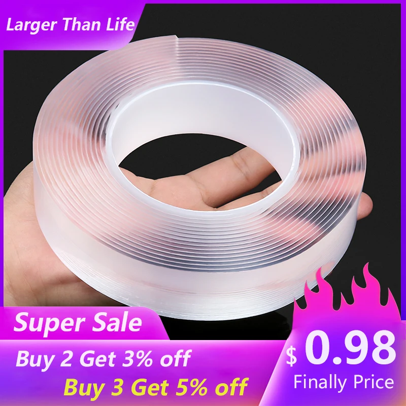 Нано-скотч двусторонний, прозрачный, многоразовый, клейкая лента, водостойкие наклейки на стены, для ванной, для украшения дома, 1235 м