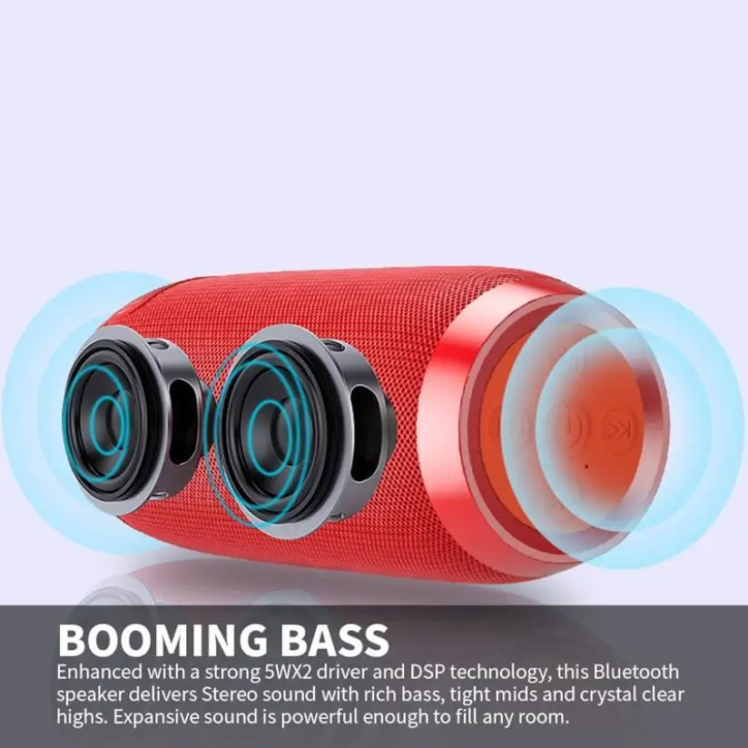 Описание: 1. Новый товар и высокое качество. 2. Сетчатая крышка для защиты динамика от воды, пыли, ударов. 3. IPX5 водонепроницаемый, пыленепроницаемый, ударопрочный. 4. 5 Вт * 2 большая мощность с двумя басовыми диафрагмами на каждой стороне, вибрирует при воспроизведении музыки. 5. Цилиндрическая форма и встроенный левый и правый канал обеспечивают 360 ° стерео. 6. Функция вызова, микрофон с шумоподавлением позволяет отвечать на звонки, не доходя до телефона. 7. Fm-приемник позволяет свободно слушать радио. 8. Поддержка MP3, WMA, WAV, FLAC, APE форматов музыкальных файлов. 9. Поддержка tf-карты или sd-карты misro до 32G, поддержка USB 2,0 диска. 10. Поддержка USB флеш-диска plug and play. 11. Поддержка внешних MP3 / MP4/компьютера и других функций аудиовхода (AUX) 12. Функция TWS, вы можете подключить два динамика с одной синхронизацией телефона. 13. Простое управление кнопками, вы можете нажать кнопки для включения/выключения, воспроизведения/паузы, режима переключения, пропускать песни, регулировать громкость и т. Д. 14. Bluetooth 5,0, быстрое подключение и стабильный сигнал, Совместимость со всеми устройствами Bluetooth. 15. Аккумулятор емкостью 1200 мАч до 10 часов воспроизведения при 2/3 громкости при полной зарядке. 16. Это не только bluetooth-динамик, но и радио, проводной динамик, басовый бум-бокс Характеристики: 1. Размер упаковки: 165x70x72мм 2. Функции: подключение по Bluetooth, подключение к проводу 3. Версия Bluetooth: 4,2 4. Материал корпуса: пластик и ткань 5. Поддержка TF карты и U-disk плеера 6. Расстояние приема: 10 м и ниже 7. Выходная мощность: 5 Вт * 2 8. Входная чувствительность: 500 мВ 9. Разрешение: ≥ 90 дБ 10. Отношение сигнал-шум: ≥ 95 дБ 11. Рабочее напряжение: 5 В постоянного тока Упаковка: Динамик Bluetooth * 1 Оригинальная коробка * 1 Usb-кабель для передачи данных * 1 Аудиокабель * 1 Руководство на английском языке * 1