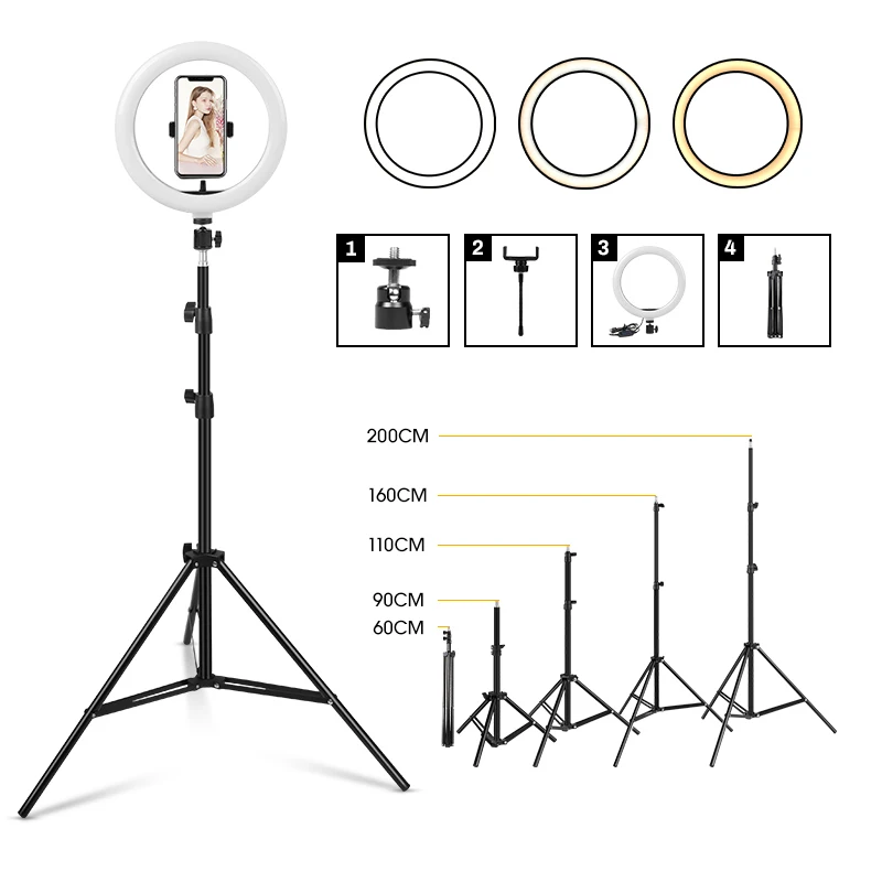 Кольцевой светильник 26 см + штатив разной длины лампа для селфи светодиодный круглый светильник USB с держателем для мобильного телефона