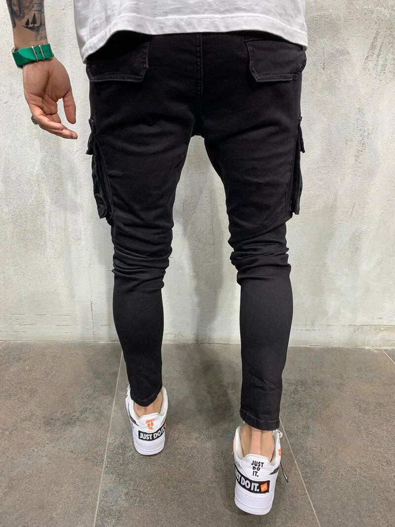 Джинсы-Джоггеры мужские, однотонные, на молнии, с несколькими карма...