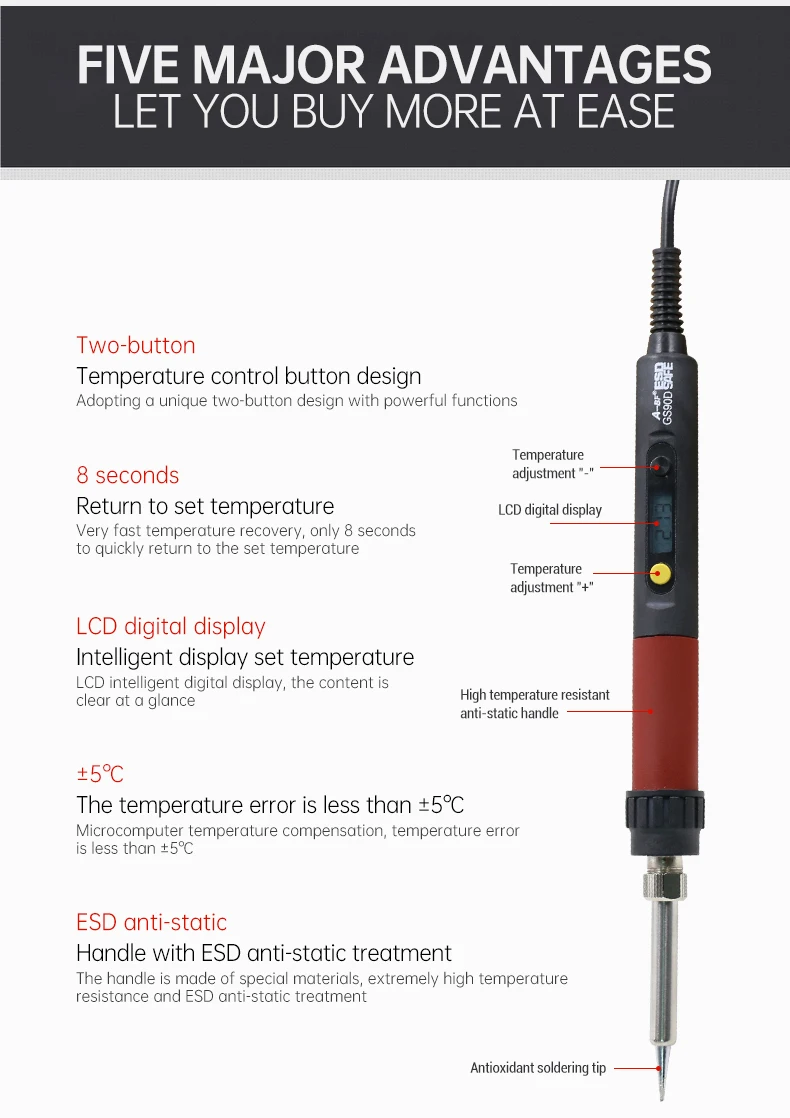 A-BF GS60D цифровой дисплей контроль температуры Электрический паяльник 60 Вт быстрый нагрев Антистатическая сварочная станция