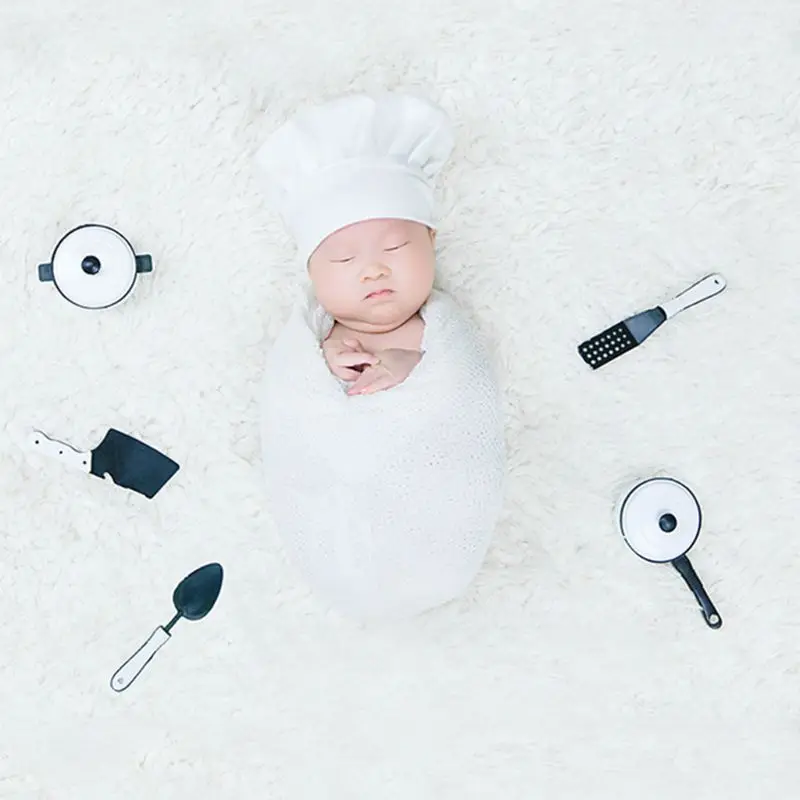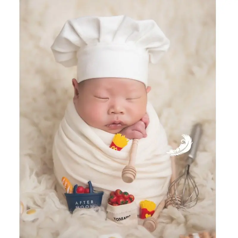 Реквизит для детской фотографии, белая растягивающаяся шляпа шеф-повара, креативный реквизит аксессуары для фотографирования новорожденных