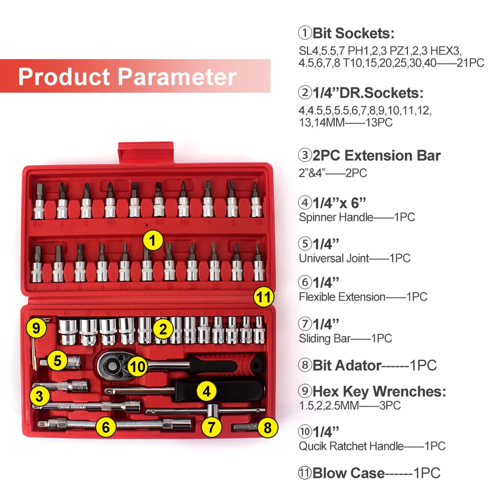 Набор головок для автомобиля, комплект из 46 предметов для ремонта ...