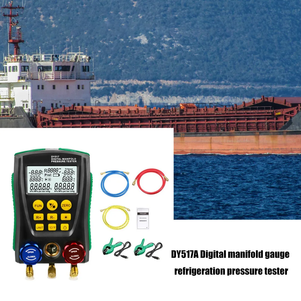 DY517A манометр Холодильный цифровой вакуумный манометр тестер утечки монитор детекторОписание:Интеллектуальный электронный хладагент-это вспомогательный инструмент для установки, тестирования и обслуживания холодильного оборудования, такого как кондиционеры и холодильное хранилище. Прибор имеет двойной тест давления, двойной температурный тест (нужен тестовый зажим, не входит в комплект), цифровое считывание, многофункциональное переключение, многофункциональная функция и встроенная база данных хладагента. В приборе используются высокопрочные инженерные пластмассы и гибкий нескользящий Силиконовый дизайн, вся машина прочная и удобная для удержания. Встроенный 32-битная цифровая обработка блок и высокой точности система сбора и обработки данных блок, которые ставят высокие данные и стабильности во всем мире. Большой размер жидкокристаллического дисплея, ЖК-дисплей задняя светильник поддержки, отображение данных четкий и удобный для чтения, удобный светильник операции. Долговечный клапан, 1/4 дюймовый стандартный дизайн интерфейса для обеспечения долговечности и универсальности прибора.Прибор может измерять двойное давление (манометрическое давление) одновременно, а также двойное измерение температуры (требуется тестовый зажим, не входит в комплект), с автоматическим мульти-единичным преобразованием давления, автоматическое преобразование температуры Цельсия/Фаренгейта, чтобы облегчить различные потребности. Встроенный 89 видов хладагента давления-испарения температуры базы данных, также рассчитать перегрев охлаждения, чтобы облегчить прямое считывание данных рабочих процессов. Также он проверяет процент измерения вакуума; Измерение утечки давления, запись Скорости времени утечки. Заслуживает того, чтобы этот многофункциональный, точный и просто управляемый цифровой коллектор позволял вам делать работу правильно.Характеристика:EC/EN61010-1 стандарты безопасности для проектирования и производства.1) давление, измеренное цифровым манометром, является манометром.2) Диапазон испытаний давления от-101кпа до 6мпа (-0.1бар до 60бар).3) Предельное давление 10 МПа (100 бар).4) Максимальное рабочее давление стандартного шланга составляет 600 фунтов на кв. дюйм (приблизительно 4,13 МПа, 41,3 бар). Предельное давление составляет 3000 PSI приблизительно 20,68 МПа, 206,8 бар).5) Пожалуйста, подтвердите номинальное значение давления тестируемого оборудования перед тестированием. Не используйте его, если он превышает диапазон инструмента. Также для DY517A, если упакованШланги не соответствуют требованиям к давлению, вы можете использовать подходящие замены для тестирования.6) не используйте и не храните прибор при высокой температуре, высокой влажности, легковоспламеняющихся, взрывоопасных и сильных электромагнитных полях.7) Пожалуйста, не изменяйте внутреннюю цепь прибора, чтобы избежать любого повреждения инструмента или опасности.8) Пожалуйста, носите квалифицированное защитное оборудование для защиты пользователя во время тестирования.9) Пожалуйста, используйте прибор в хорошо проветриваемой среде для предотвращения вдыхания токсичных газов.Спецификация:Размеры: 170*110*50 мм/6,69*4,33*1,97"Вес: 950 гИспытание на давление: манометрЕдиница измерения давления: кПа; МПа; Бар; Инхг; PSI.Диапазон измерения давления: 0 кПа ~ 6000 кПаРазрешение испытания н
