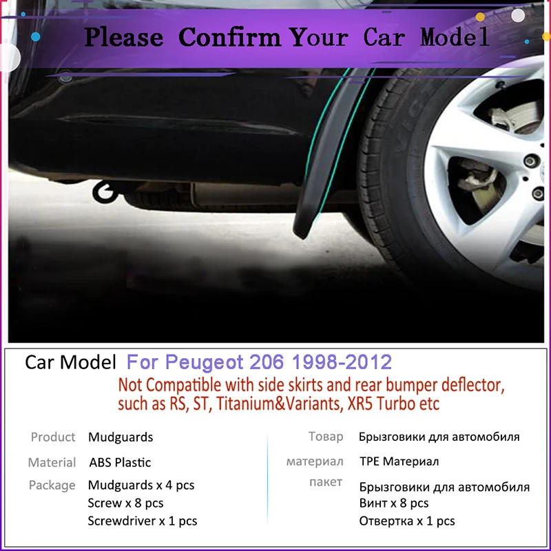4 шт. автомобиля Fender Брызговики спереди и сзади брызговики брызговик брызговики для Peugeot 206 1998-2012