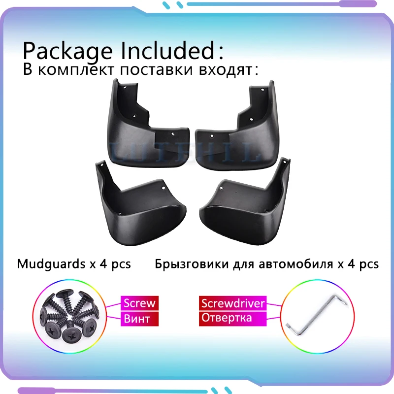 4 x брызговика, 1 x отвертка, сумка для фиксации винтов