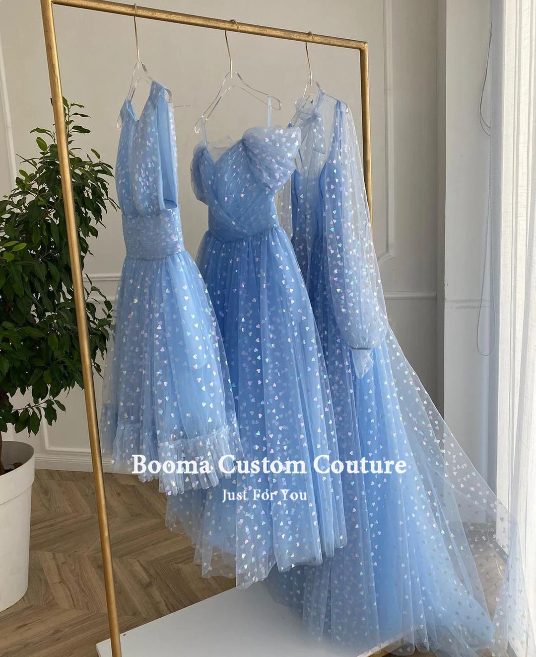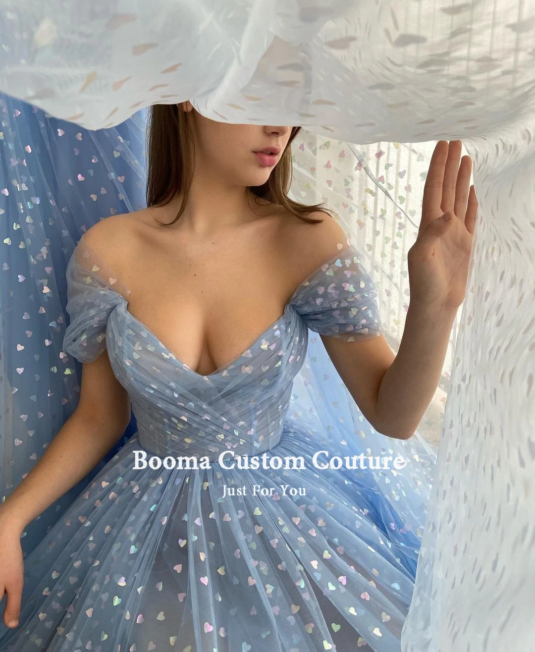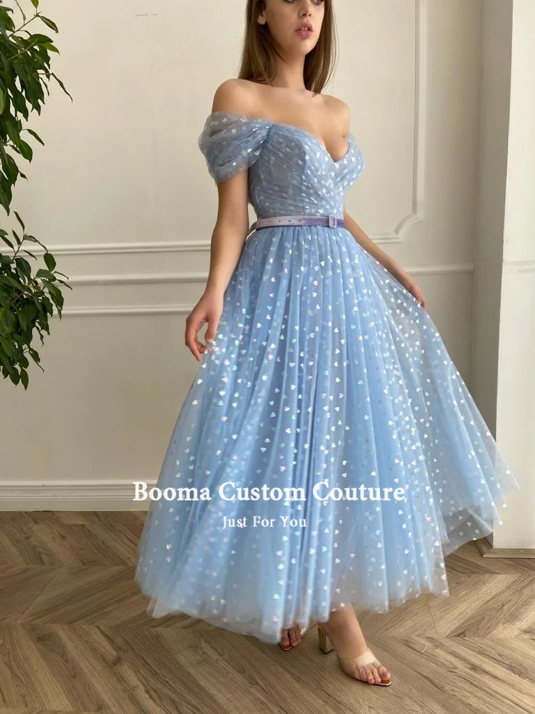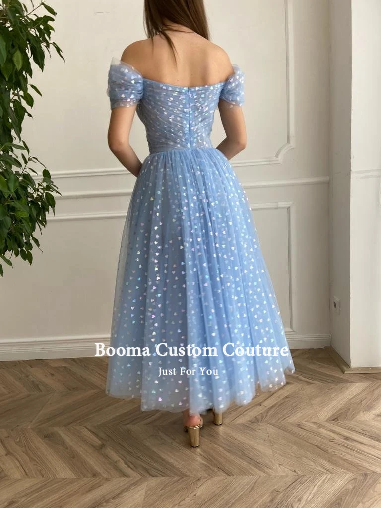 Booma сказочные синие облегающие платья для выпускного вечера 2022 с открытыми плечами и V-образным вырезом миди платья для выпускного вечера плиссированные платья а-силуэта для свадебной вечеринки