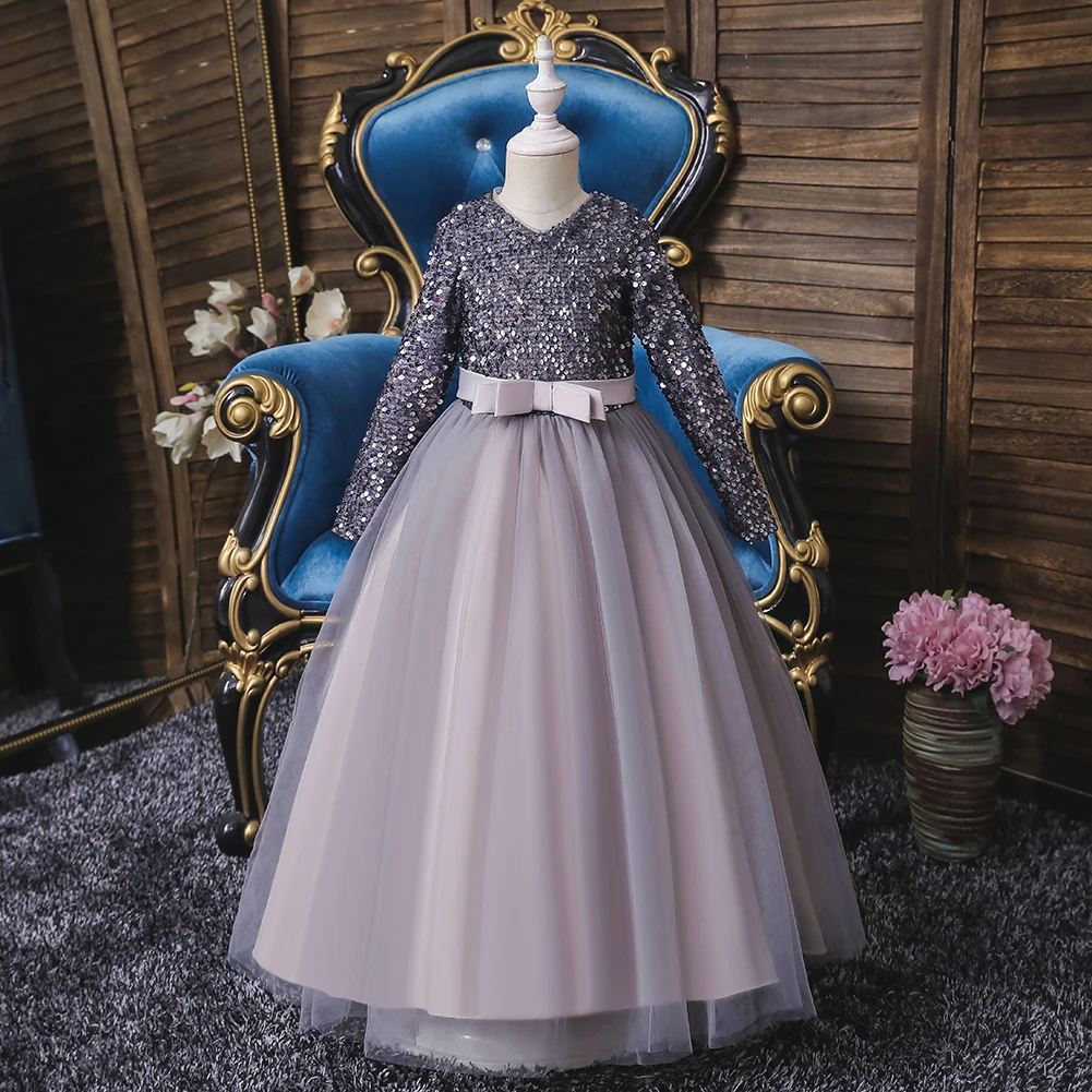 Платье для девочек LZH, однотонное, с длинным рукавом, на свадьбу, вечевечерние, 2021