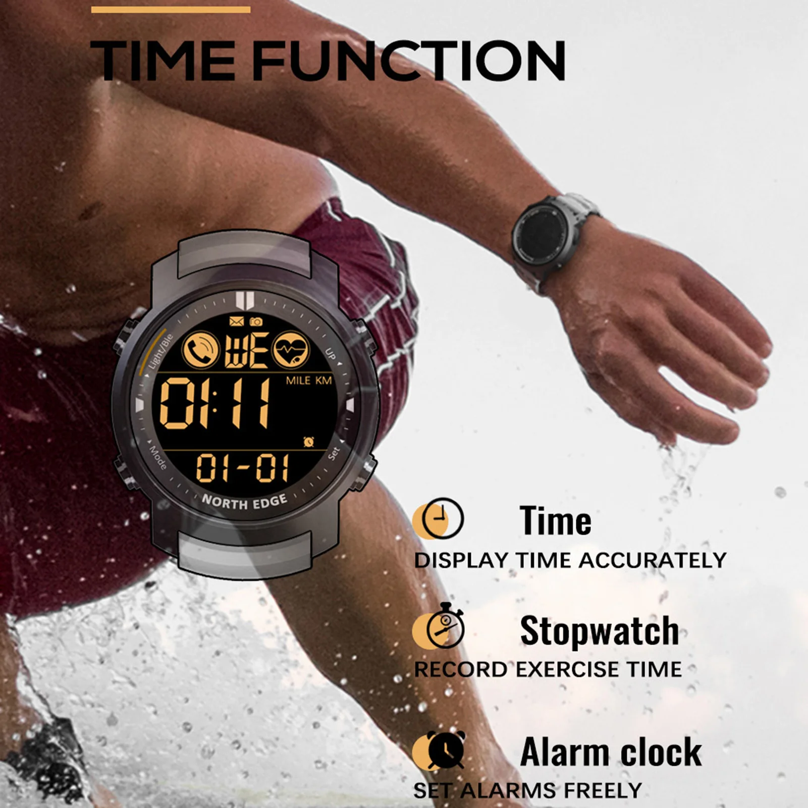 Часы NORTH EDGE Laker мужские водонепроницаемые, уличные спортивные Смарт-часы с поддержкой Bluetooth и Пульсометром