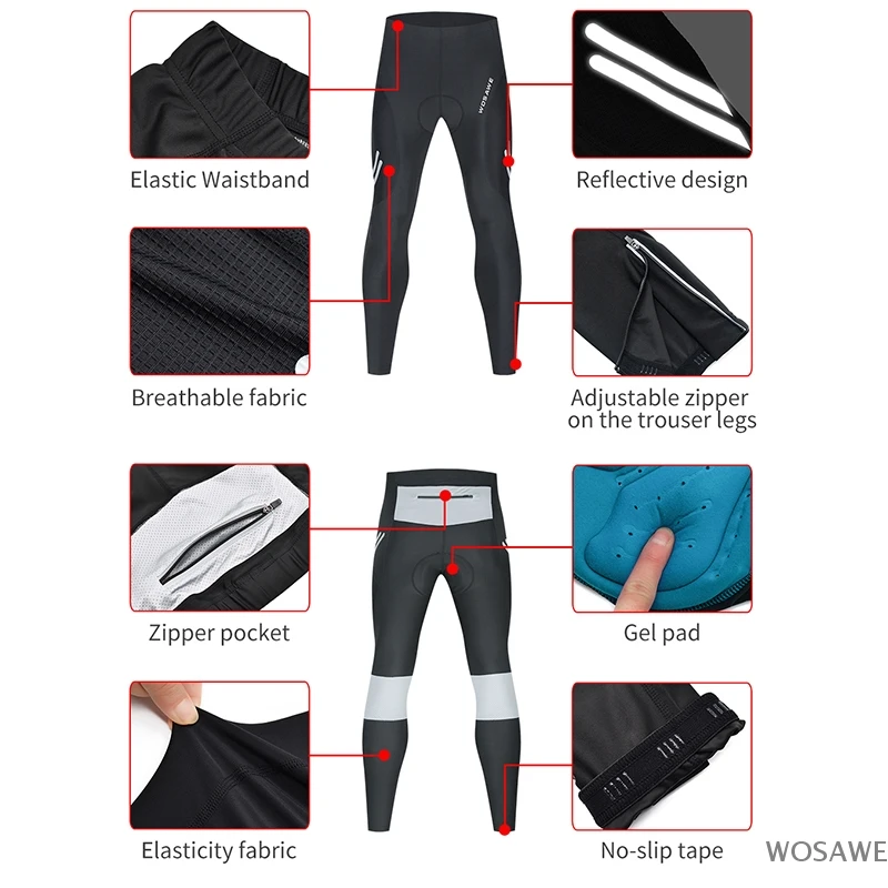 Мужские велосипедные брюки WOSAWE с 3D гелевыми подкладками, велосипедные трико, дышащие велосипедные брюки для горных велосипедов, брюки для горных велосипедов, велосипедные брюки
