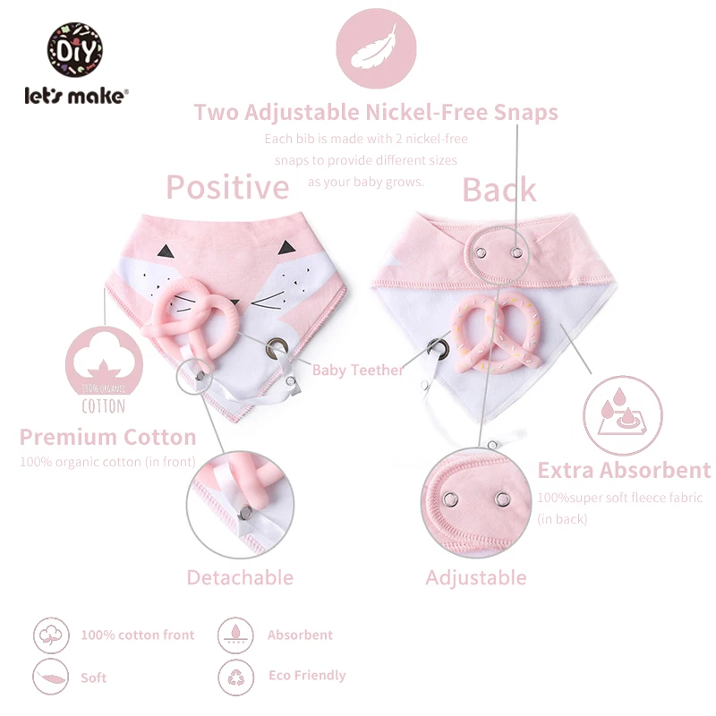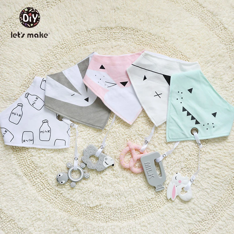 Детские Прорезыватели Let's Make, Детские принадлежности, 1 шт., хлопковый нагрудник, мультяшный силиконовый Прорезыватель без бисфенола А, детские вещи для кормления, нагрудная ткань