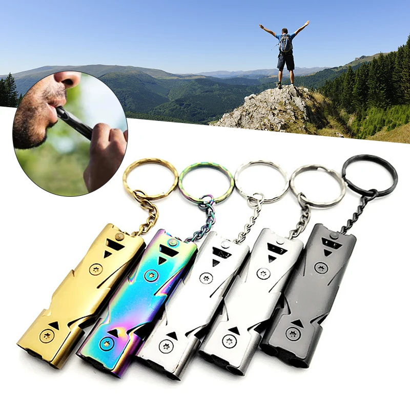 Свисток из нержавеющей стали, свисток с двойной трубкой с высоким децибелем для экстренного выживания, брелок-свисток для чарлидинга, свисток для кемпинга