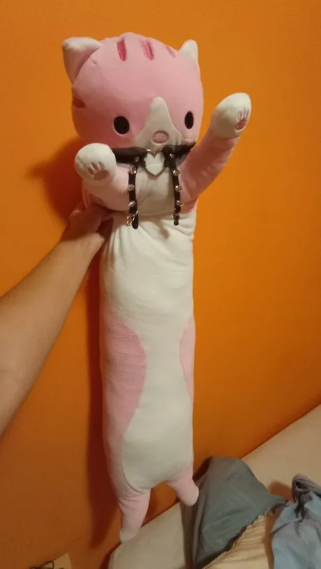 это нереальная милота!!! Купили розового котика 110 см, теперь хочу купить всех остальных!!! Качество прекрасное, никакие нитки нигде не торчат, чистенький, на спинке потайная молния, чтобы вытащить синтепон, если нужно. на фото котик в чокере - это уже дочка его так нарядила. Чокер в комплект не входит)))