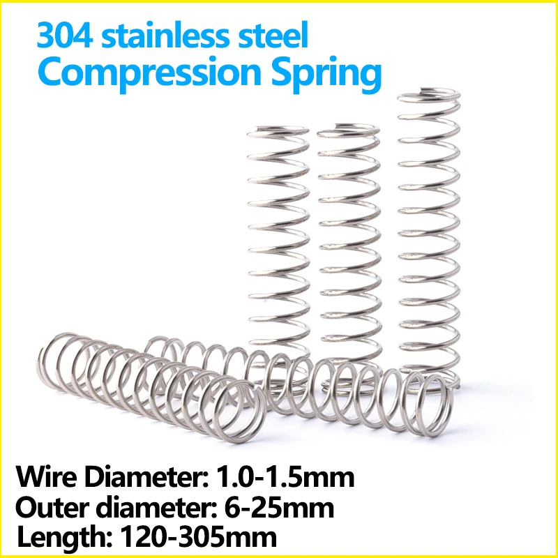 Пружина спиральная компрессионная из нержавеющей стали, диаметр 1,0-1,5 мм, внешний диаметр 6-25 мм, Длина 120-305 мм, под заказ