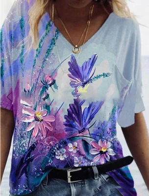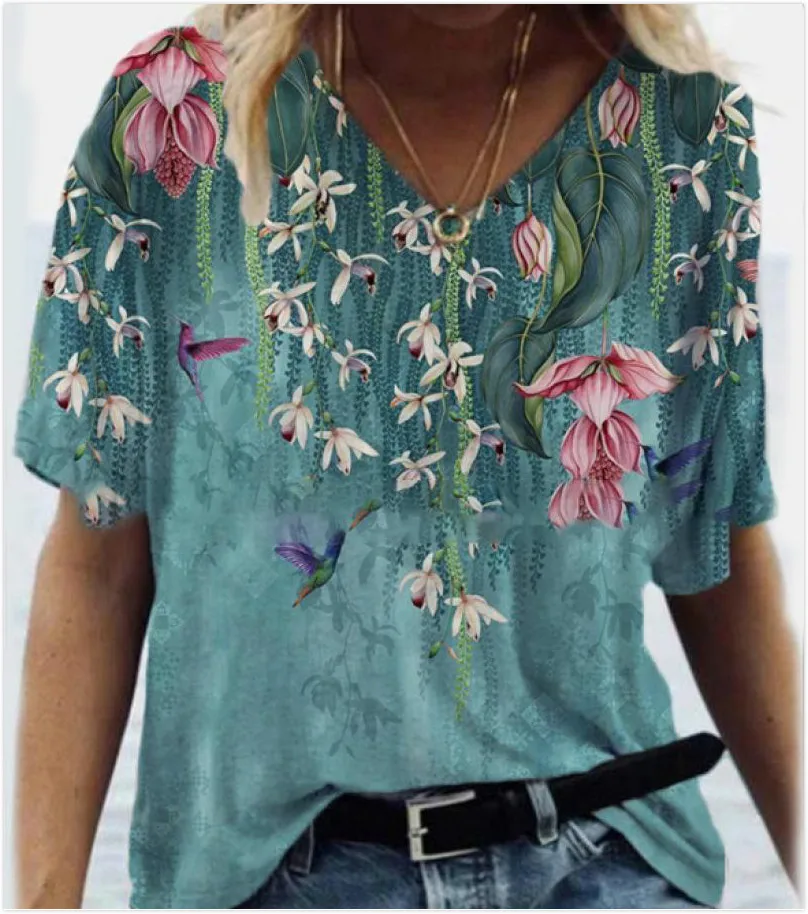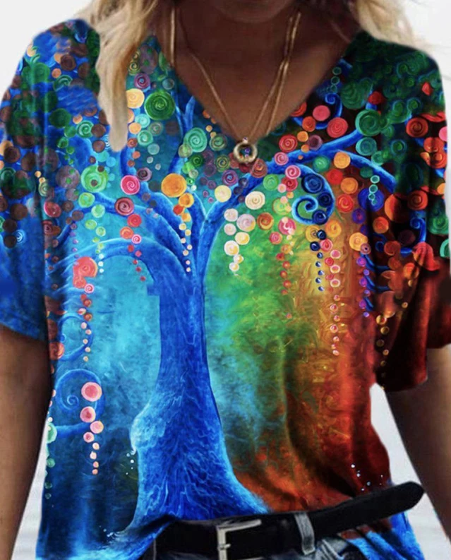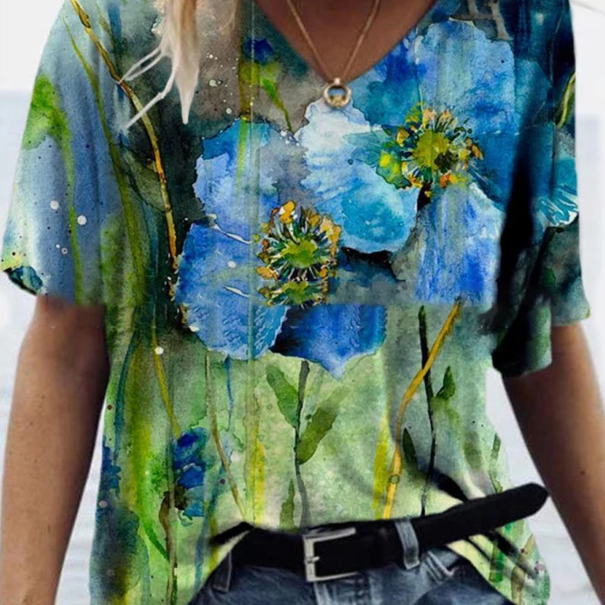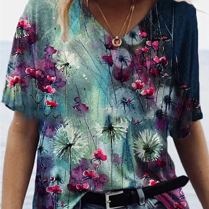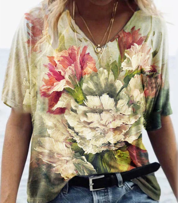 Женская Винтажная футболка, с V-образным вырезом и принтом, с коротким рукавом