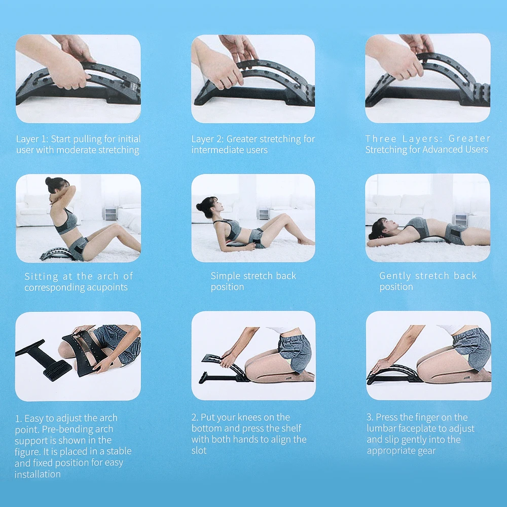 1. Четыре регулируемые стадии растяжения могут обеспечить Многоуровневое расстояние над землей, чтобы широко удовлетворить различных людей, свободно выбирать желаемую высоту для вашего тела и осуществлять свою спину здоровым образом.