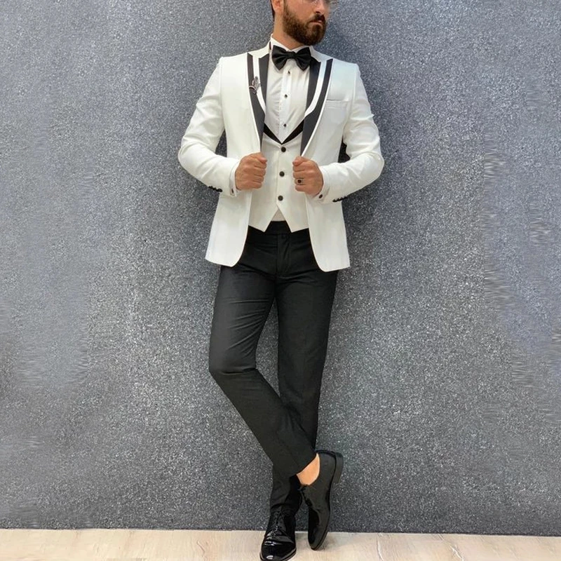 Мужские костюмы из 3 предметов, белый блейзер с черными брюками, де...