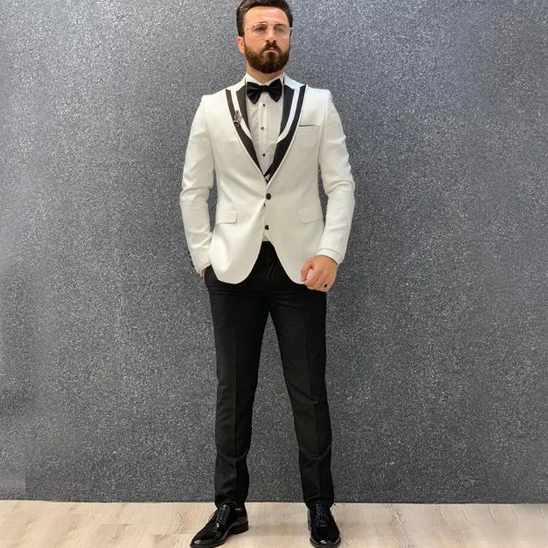 Белые костюмы для жениха, смокинг, шаль, отворот, приталенный силуэ...