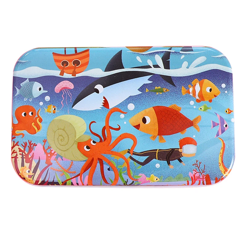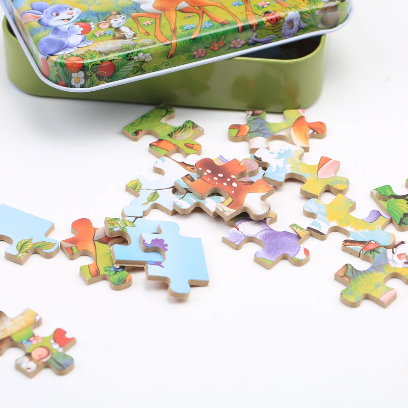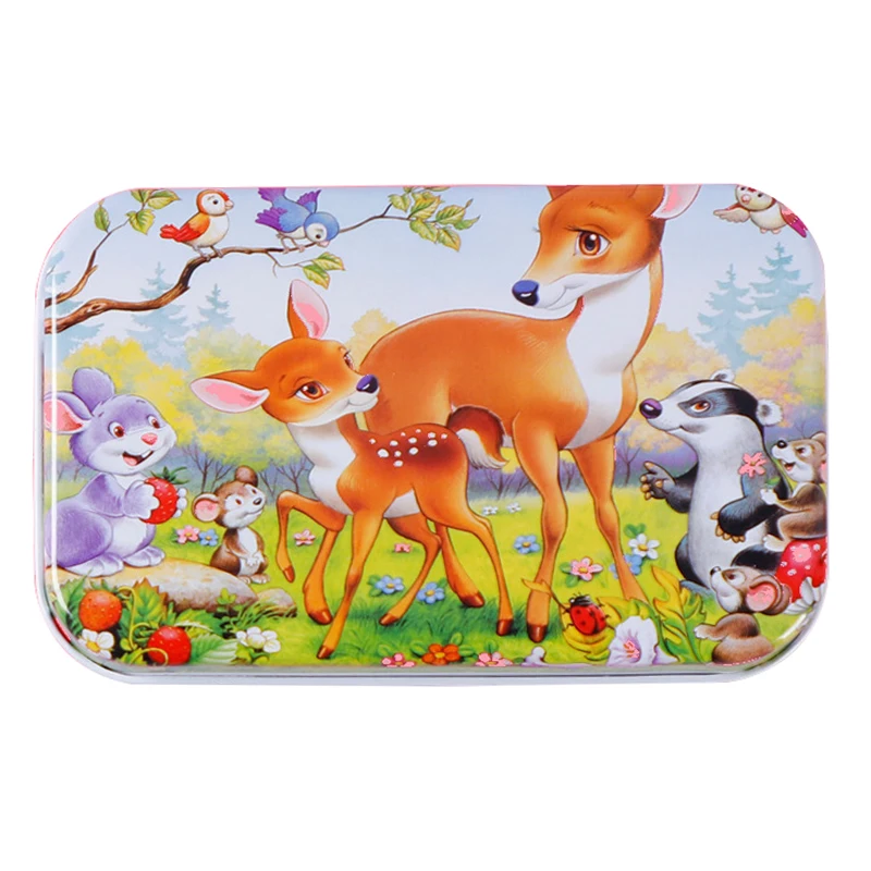 Материал: ДеревянныйЦвет соответствует: как на картинкеПол: унисексВозраст: > 3 летРазмер изделия: как на картинкеХарактеристика: интеллектуальное развитиеЛучшие подарки для игры родителей и детейПосылка включает в себя: 1 Набор игрушечных пазлов с железной коробкой