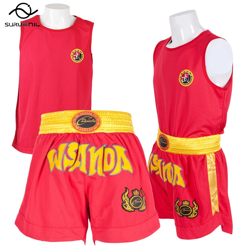 Униформа для боевых искусств, Муай Тай, шорты, футболки, комплект для детей и взрослых, боевая одежда, Санда, спарринг, костюмы, ММА, штаны для кикбоксинга Рубашка без рукавов + шорты