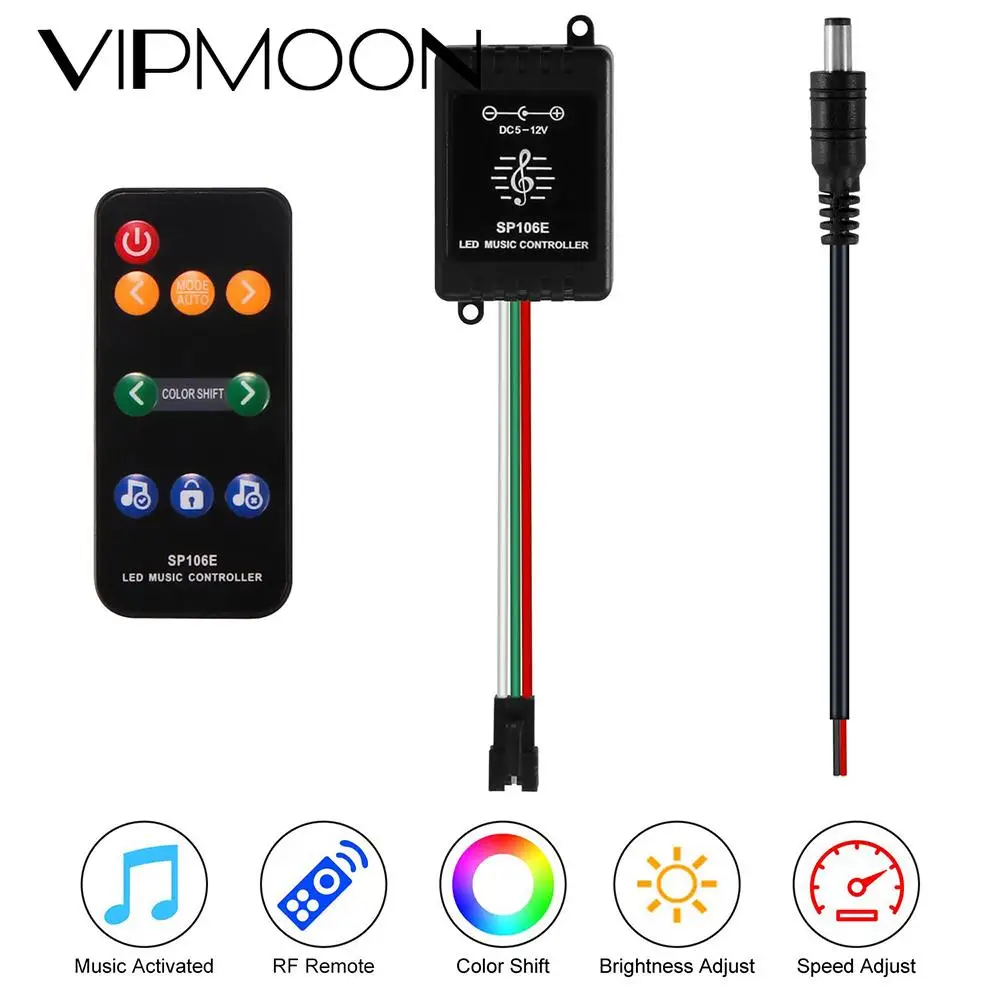 Особенности:1. Радиочастотный пульт дистанционного управления, расстояние до 15 м (без препятствий)2. Широкий источник напряжения и анти-обратное соединение3. Красочный музыкальный режим + ОБЫЧНЫЙ крутой режим работы4. Функция защиты от отключения питания5. Используется для Светодиодный светильник пикселя (фантомный светильник, полноцветный Точечный светильник)Характеристики:Модель: SP106E Dream Color Music ControllerРабочее напряжение: 5 В-12 В постоянного токаРабочий ток: 43mA - 45mAТочки управления: 600 пикселейВыходной сигнал: сигнал SPIУдаленное расстояние: 15 метровВстроенные узоры: 5 музыкальных эффектов + 20 регулярных эффектовРежим управления: пульт дистанционного управления RFЗаказ RGB: RGB (настраиваемый)Рабочая температура: -25 градусов C - 85 градусов CПоддержка IC: поддержка s общий СВЕТОДИОДНЫЙ Драйвер IC на рынкеПредостережения:1) Пожалуйста, убедитесь, что напряжение источника питания соответствует вашему контроллеру перед его питанием. Пожалуйста, никогда не подключайте его к любому источнику питания, который составляет более 12 В.2) контроллер может поддерживать DC5V ~ 12V, но он не может регулировать выходное напряжение, это означает, что выходное напряжение вашего источника питания должно быть таким же, как рабочее напряжение ваших светодиодных ламп. В противном случае ваш светодиодный светильник будет поврежден. Например, если ваш светодиодный светильник 5 В, пожалуйста, не подключайте блок питания 12 В к контроллеру, иначе он уничтожит весь светодиодный светильник.3) контроллер поддерживает только светодиодный индикатор с Умной IC, такой как WS2812B WS2811 и т. д. он не может поддерживать общий светодиодный RGB/RGBW без IC.Посылка включает в себя:1x SP106E светодиодный пульт дистанционного управления (батарея в комплект не входит)1x приемный контроллер1x штекер постоянного тока