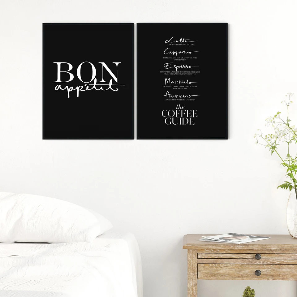 Плакаты и принты Бон аппетит, Французский декор для кухни, минимализм для столовой, типографический плакат, руководство по кофе, настенные картины