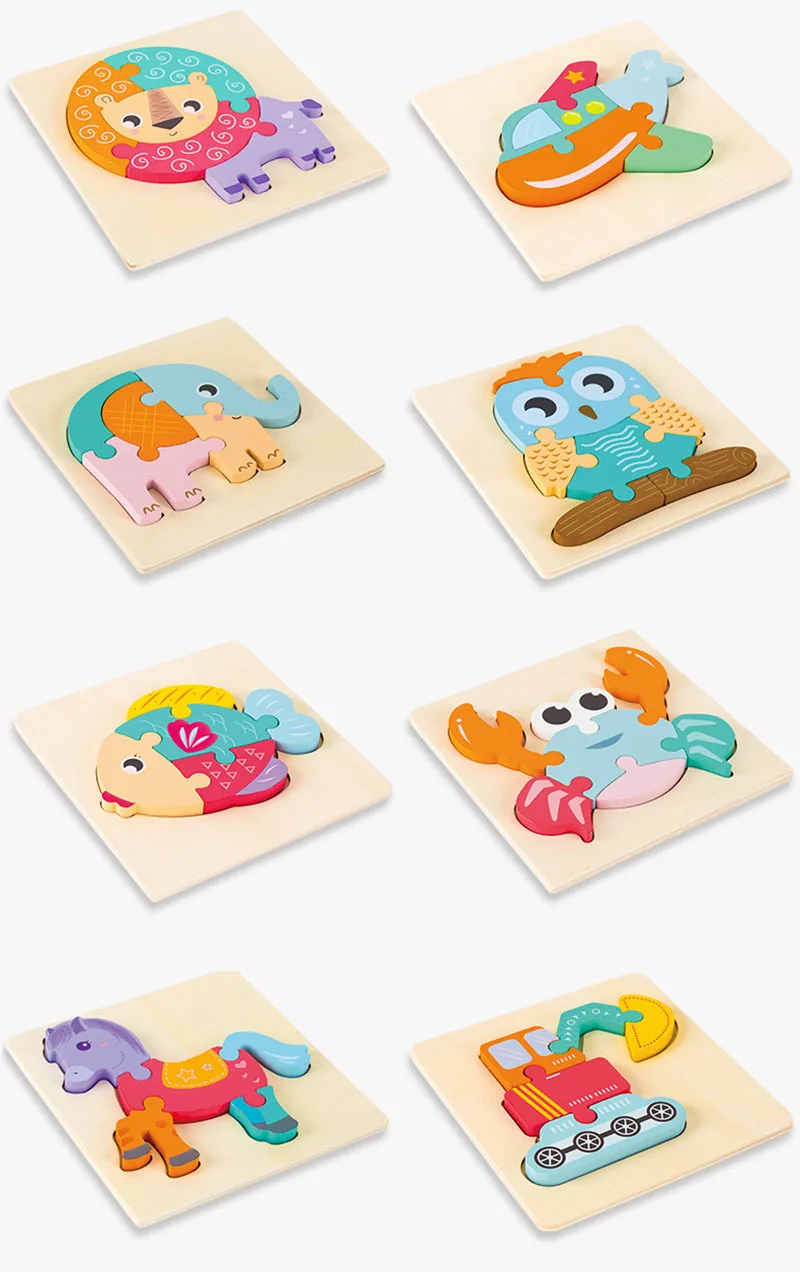 3D Деревянный пазл с мультяшными животными, детские игрушки Монтессори, Детский обучающий деревянный пазл для детей, набор строительных игрушек для мальчиков и девочек