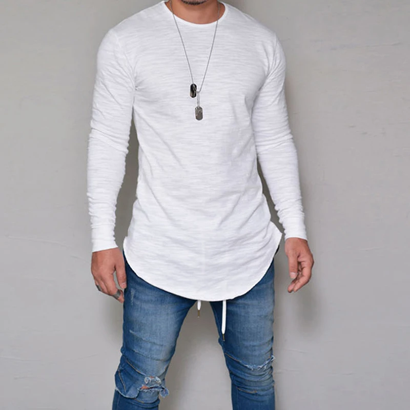 Мужская индивидуальная Повседневная футболка, Приталенная футболка, весенние новые модные топы, футболка с круглым вырезом и длинными рукавами, Camisa Masculina