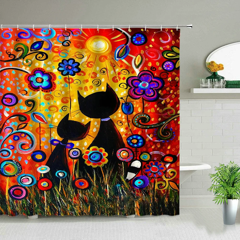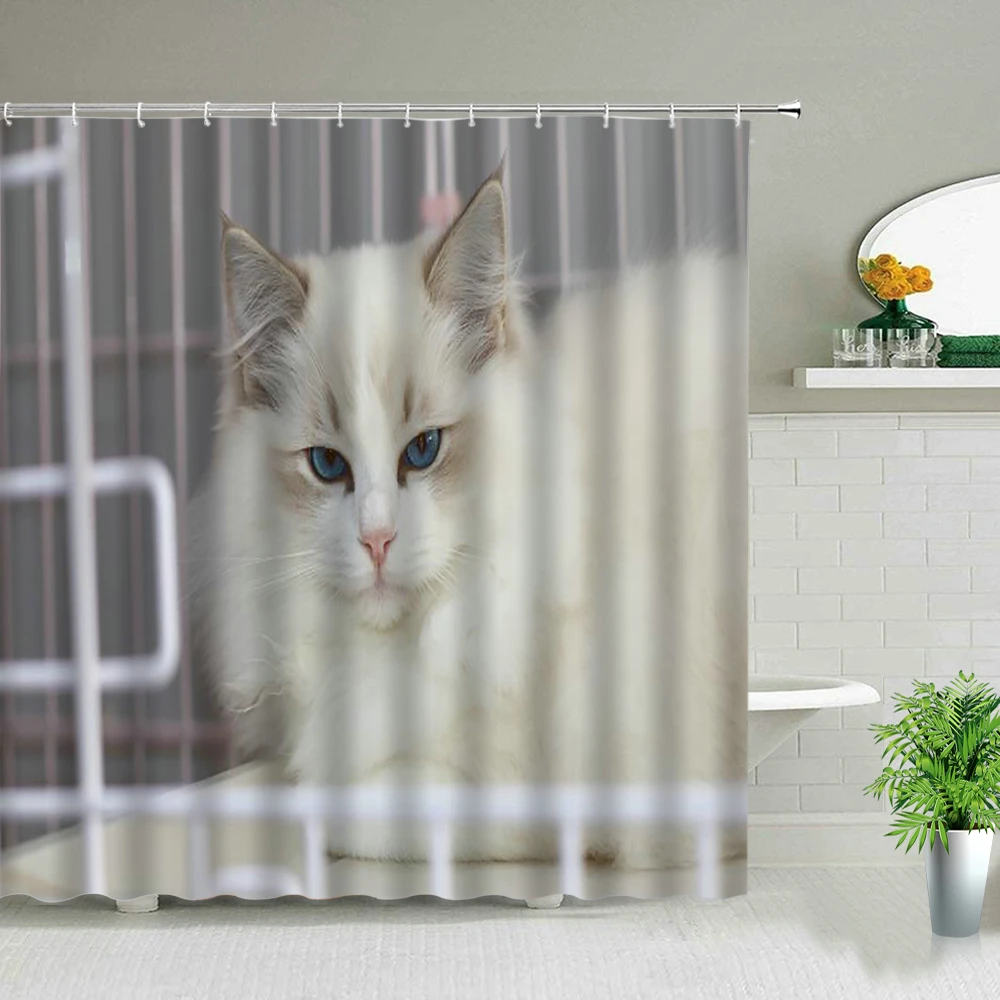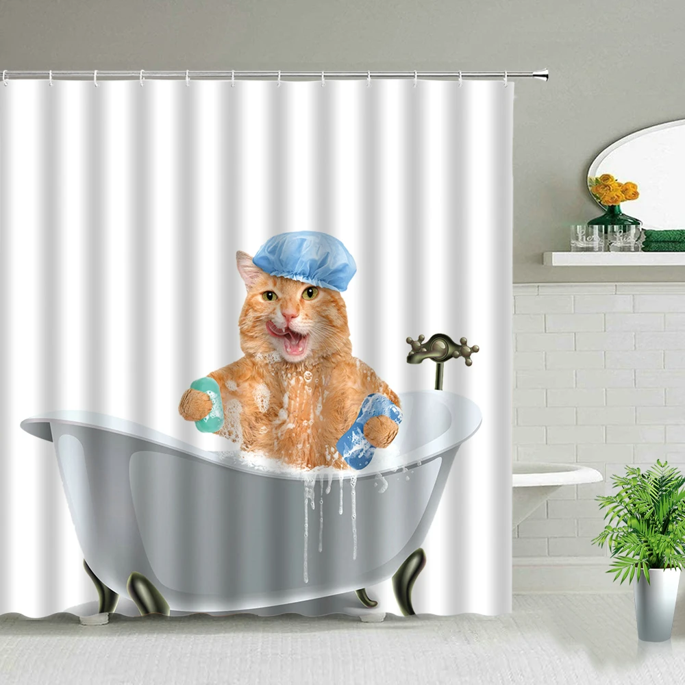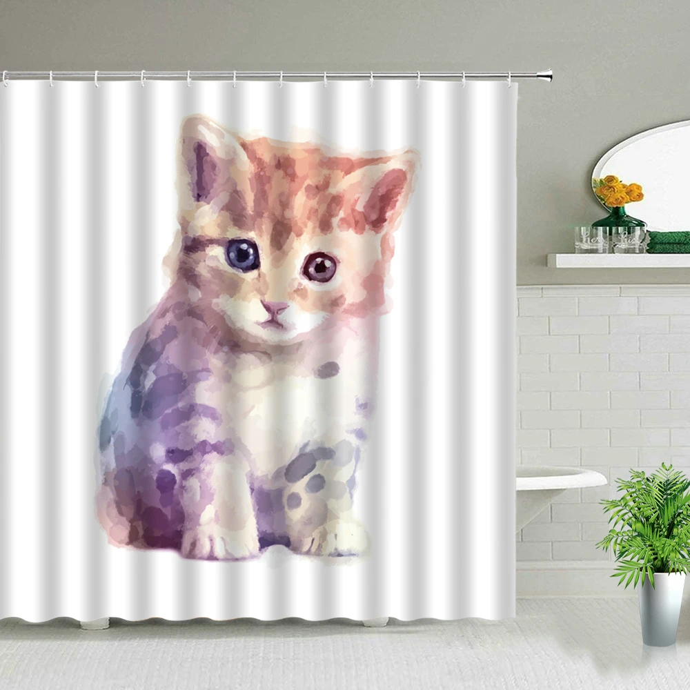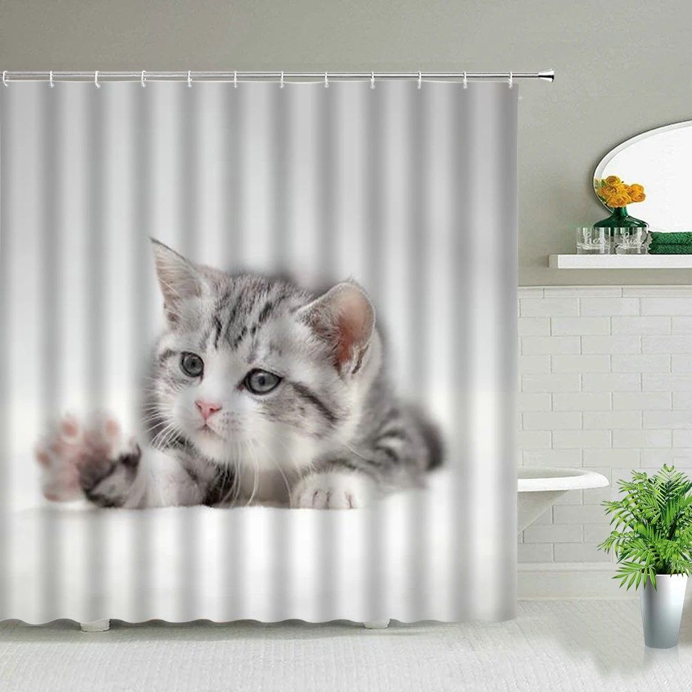 Занавеска для душа в виде кошки, креативная индивидуальная забавная занавеска для душа с милыми животными, собаками, занавеска с крючками для ванной комнаты, с крючками, водонепроницаемая декоративная занавеска для ванны