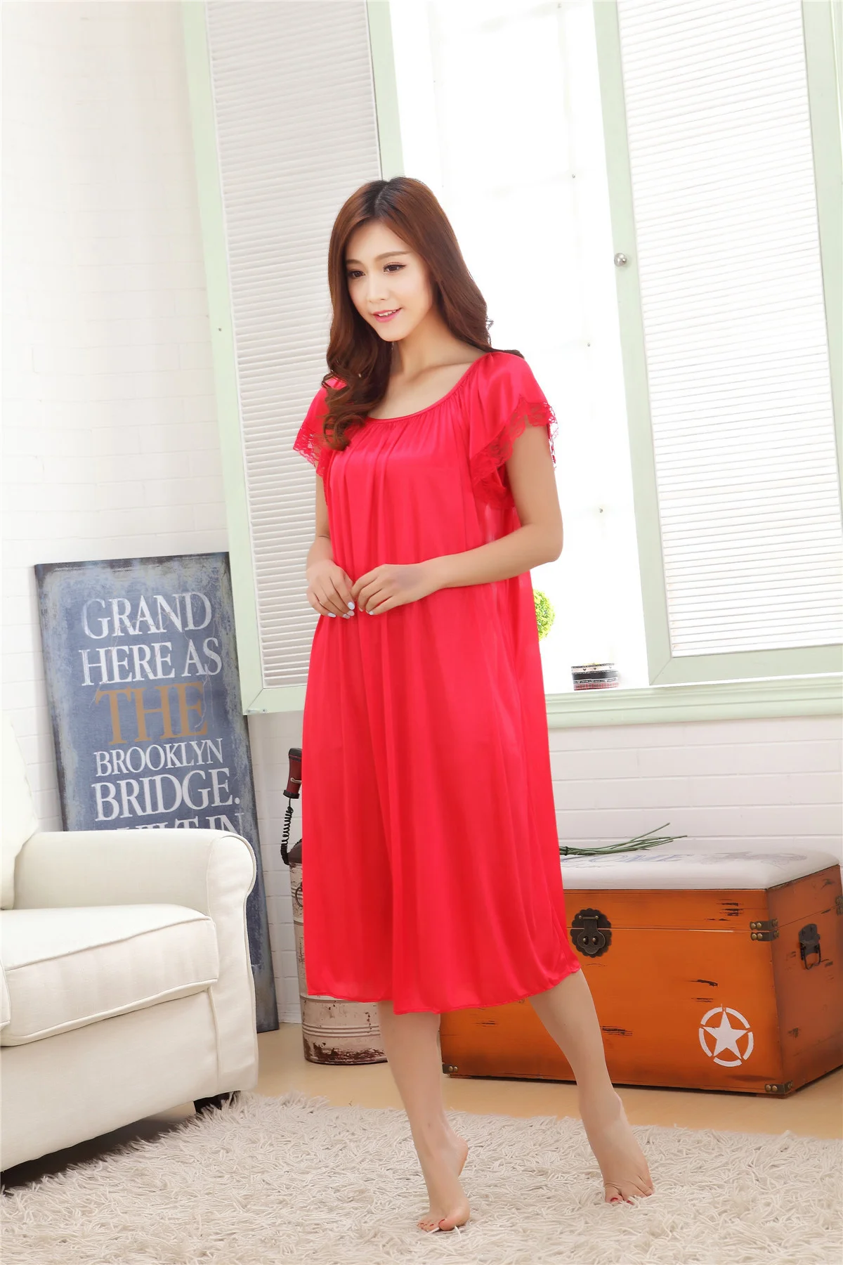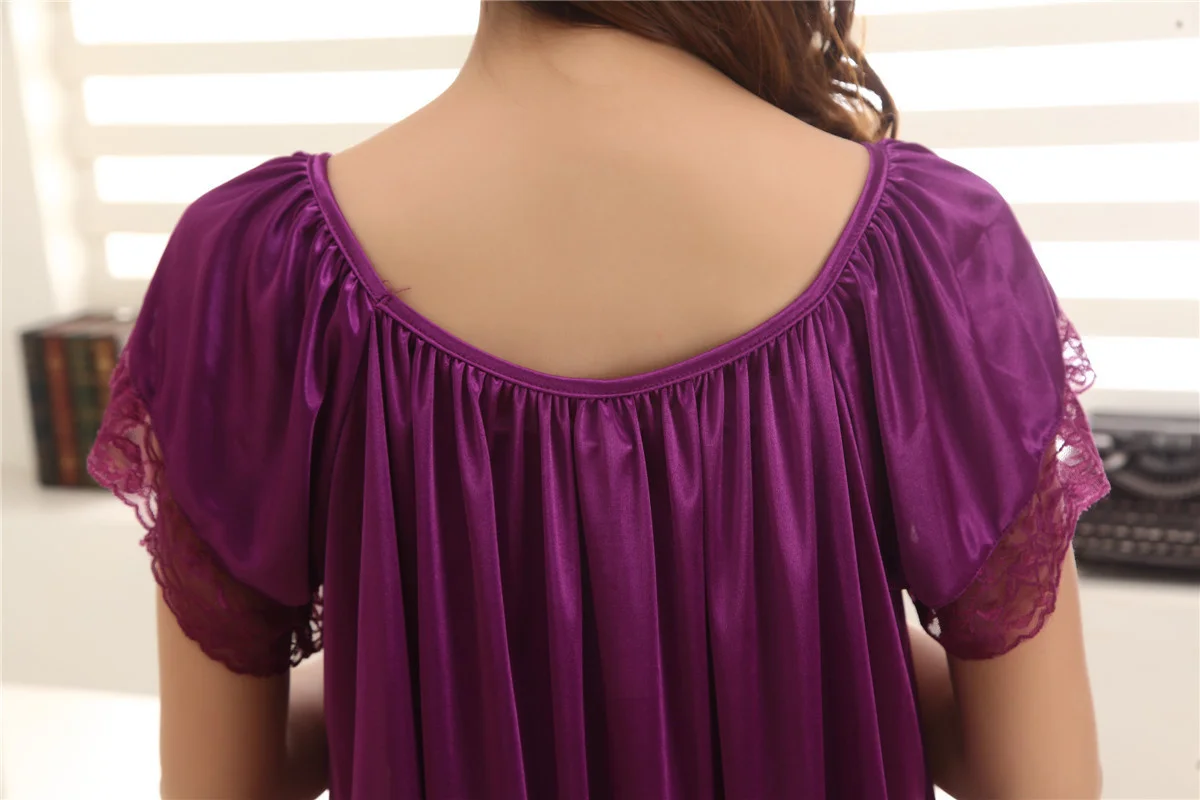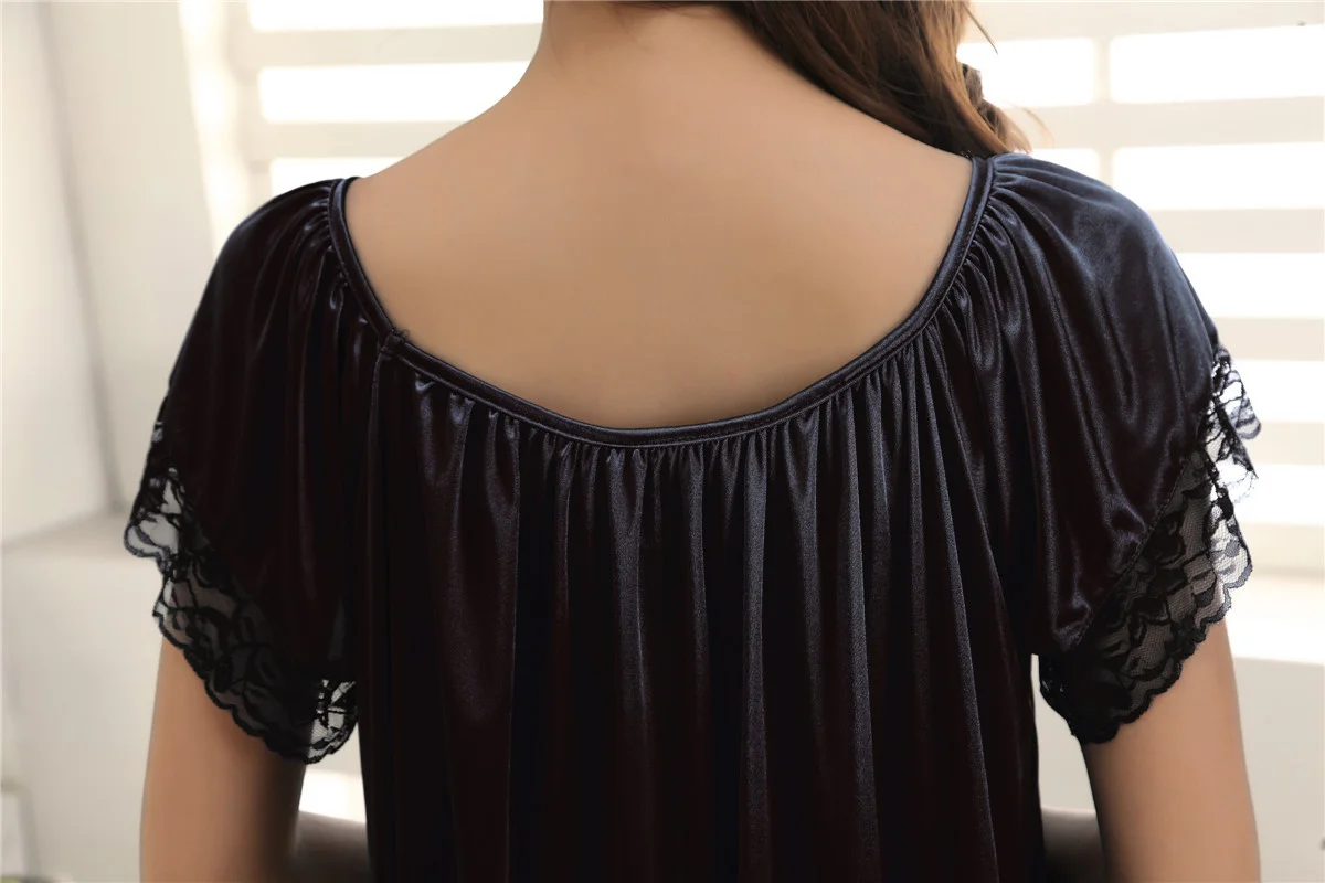 Ночная рубашка из вискозы, летняя Женская атласная одежда для сна, одежда для сна с коротким рукавом, домашняя одежда, размера плюс