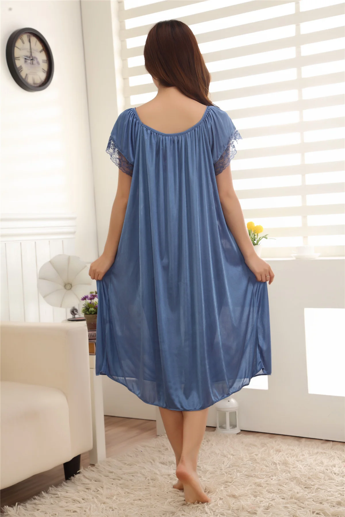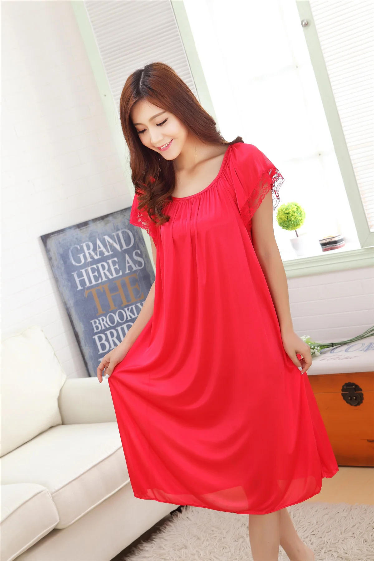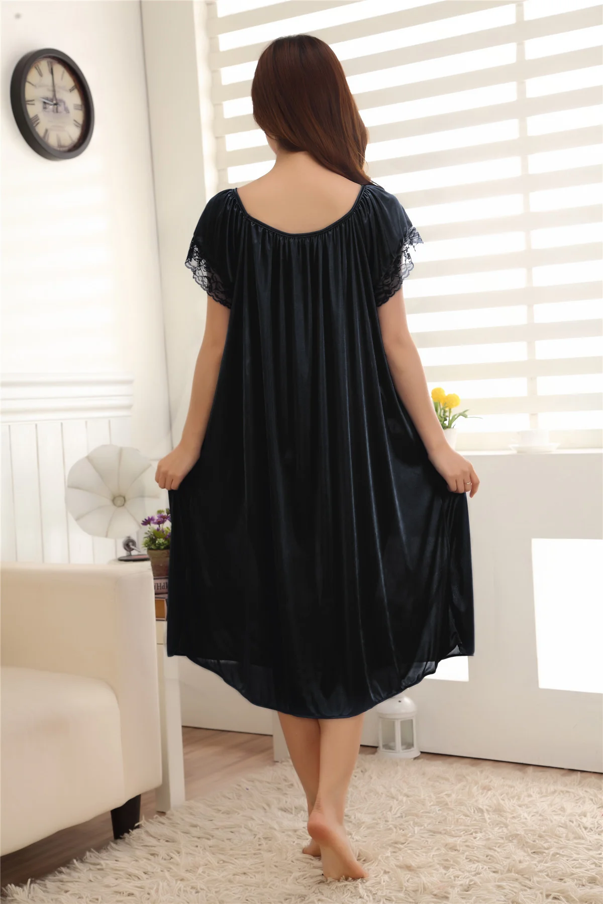 Ночная рубашка из вискозы, летняя Женская атласная одежда для сна, одежда для сна с коротким рукавом, домашняя одежда, размера плюс