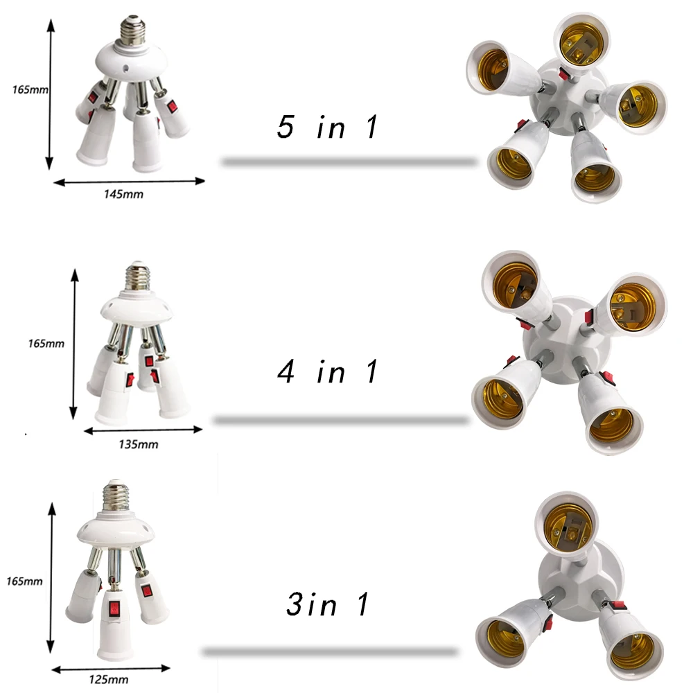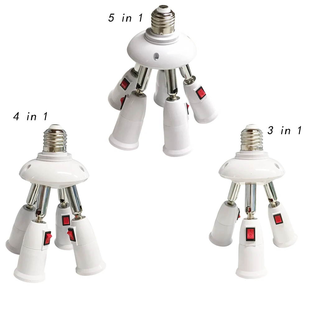 E27 к E27 сплиттер 3 в 1/4 в 1/5 в 1 держатель лампы с выключателем на 360 градусов регулируемый вращающийся светильник