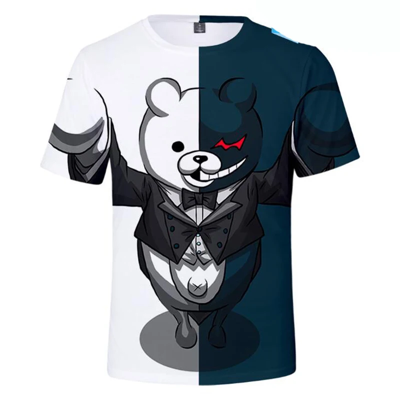 Футболка унисекс из аниме данганронпа, забавная 3d-футболка для косплея монокумы, с рисунком медведя черного и белого цвета, кавайная одежда