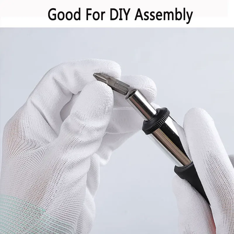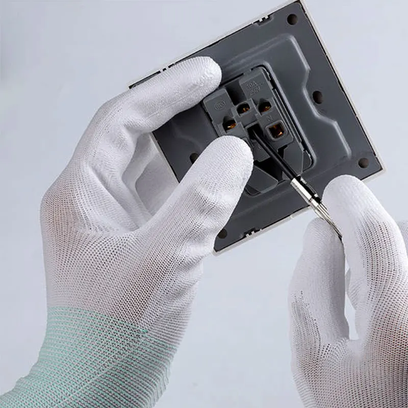 24 шт.оптовая продажа, 12 пар носочков на рабочие перчатки Белая нейлоновая подкладка погружения PU Упор для рук электроники Антистатический ESD перчатки