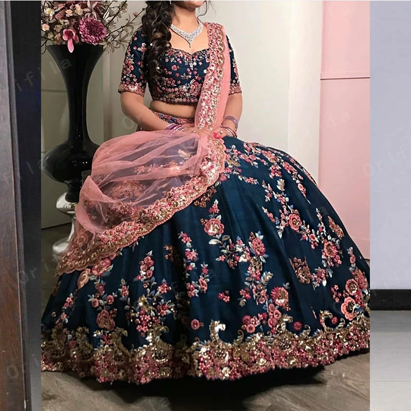 Платье для выпускного вечера черное с вышивкой, круглым вырезом и короткими рукавами