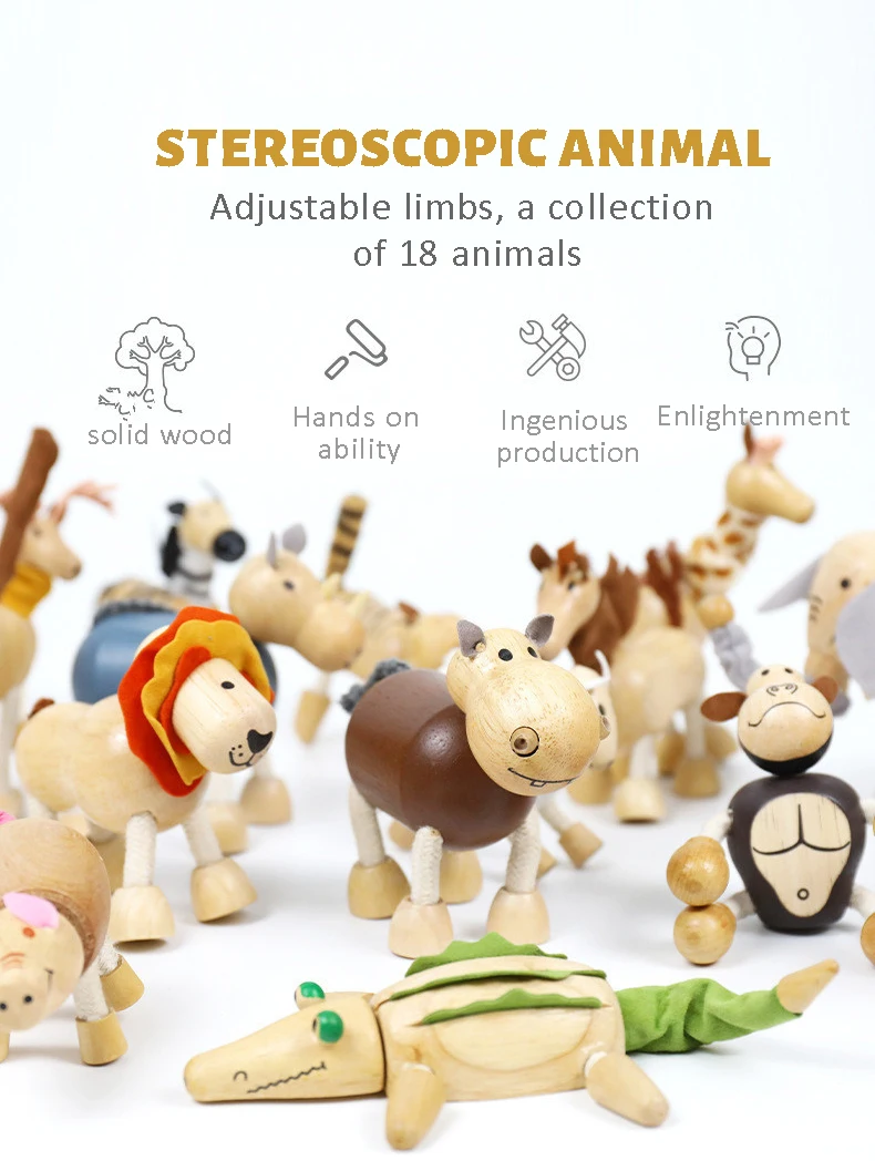 18 стилей, новые милые деревянные кубики с животными, декоративная ...