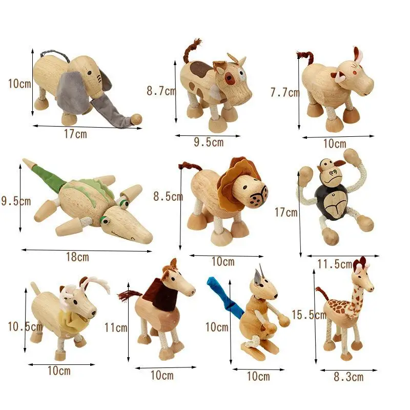 Деревянная маленькая кукла-животное из массива дерева, модель игруш...