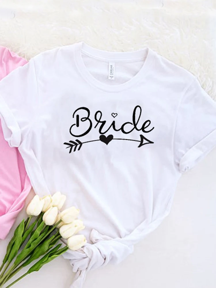 Футболка для женщин, из Футболка невесты хлопка, с коротким рукавом