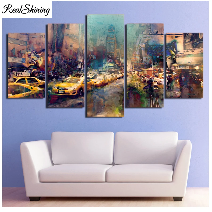 Набор для алмазной вышивки Такси, картина квадратной формы с абстрактным изображением Нью-Йорка, мозаика 5D сделай сам, 5 шт., N885